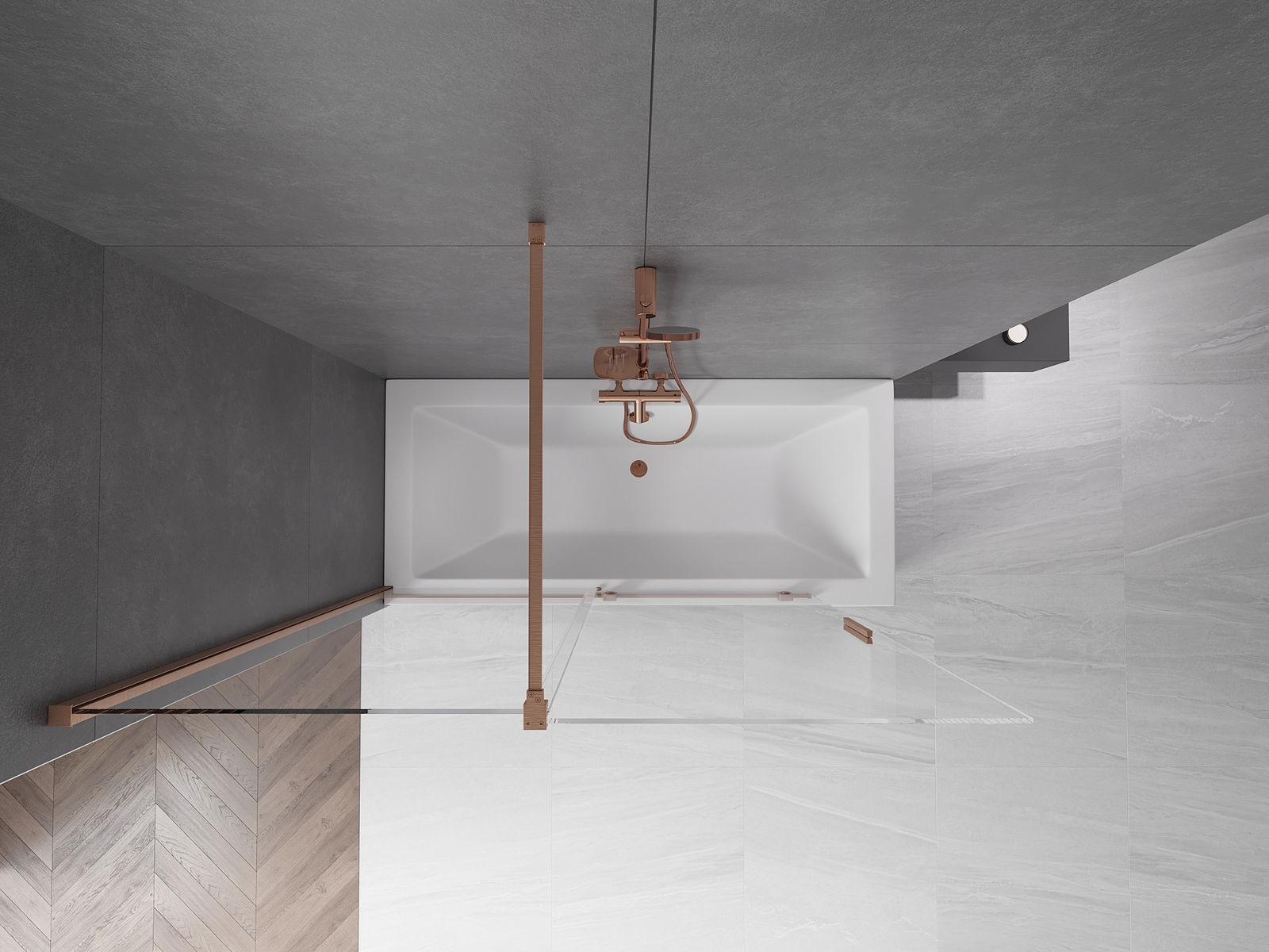 Mexen Velar paroi de baignoire à 2 panneaux coulissants 150 x 150 cm, transparent, cuivre brossé - 896-150-000-01-65