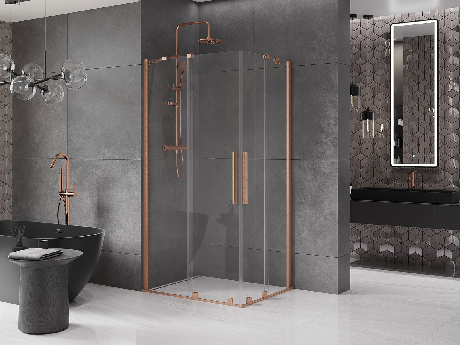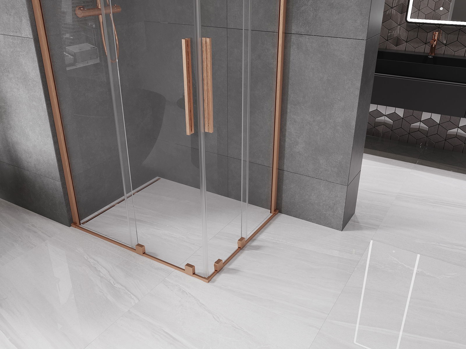 Mexen Velar Duo cabine de douche coulissante 100 x 90 cm, transparent, cuivre brossé - 871-100-090-02-65