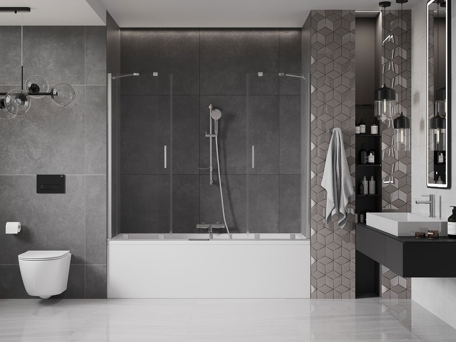 Grâce à l'utilisation d'un système de montage universel, le paravent peut être monté à droite ou à gauche, selon les besoins. De cette façon, vous pouvez facilement concevoir une douche adaptée à l'espace de votre salle de bains.