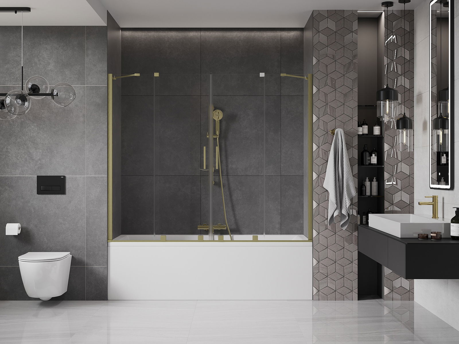 Mexen Velar Duo paroi de baignoire à 2 panneaux coulissants 170 x 150 cm, transparent, doré brossé - 896-170-000-02-55