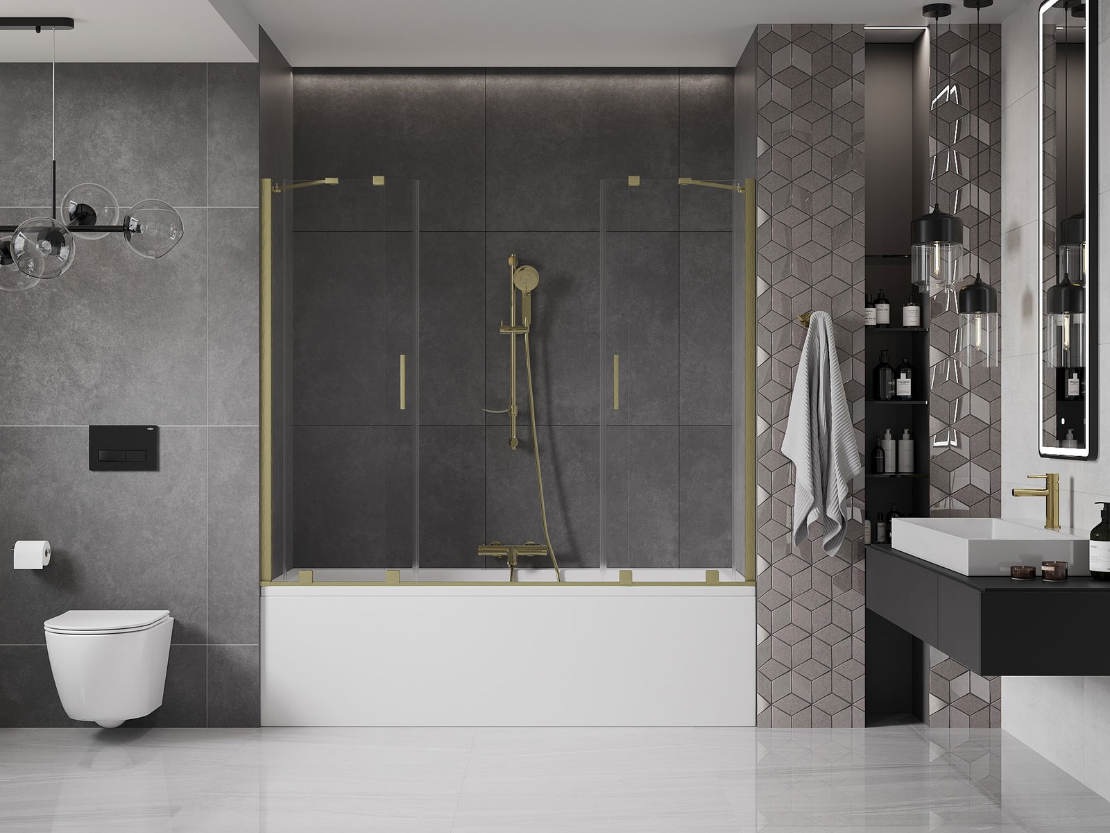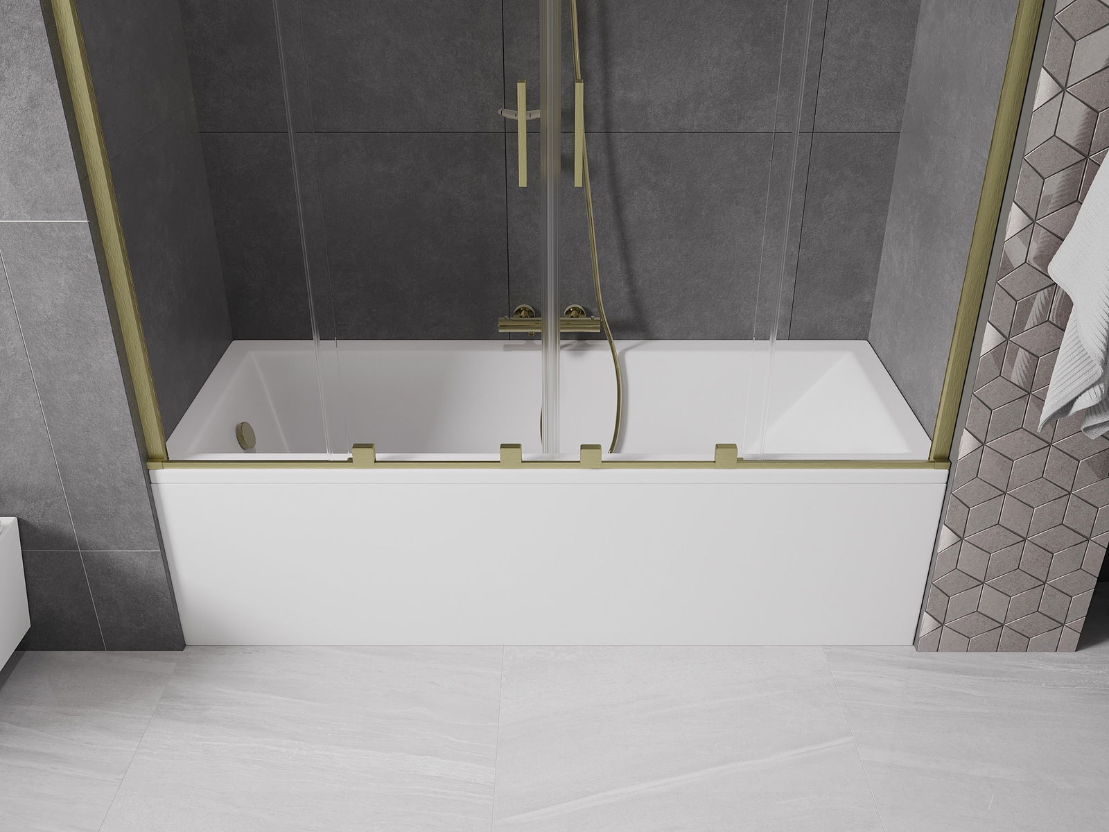 Mexen Velar Paroi de baignoire duo à 2 volets coulissants 200 x 150 cm, transparent, or brossé - 896-200-000-02-55
