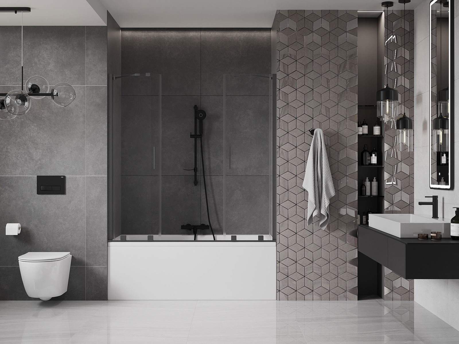 Mexen Velar Duo pare-douche baignoire coulissant à 2 volets 140 x 150 cm, transparent, gris canon brossé - 896-140-000-02-66