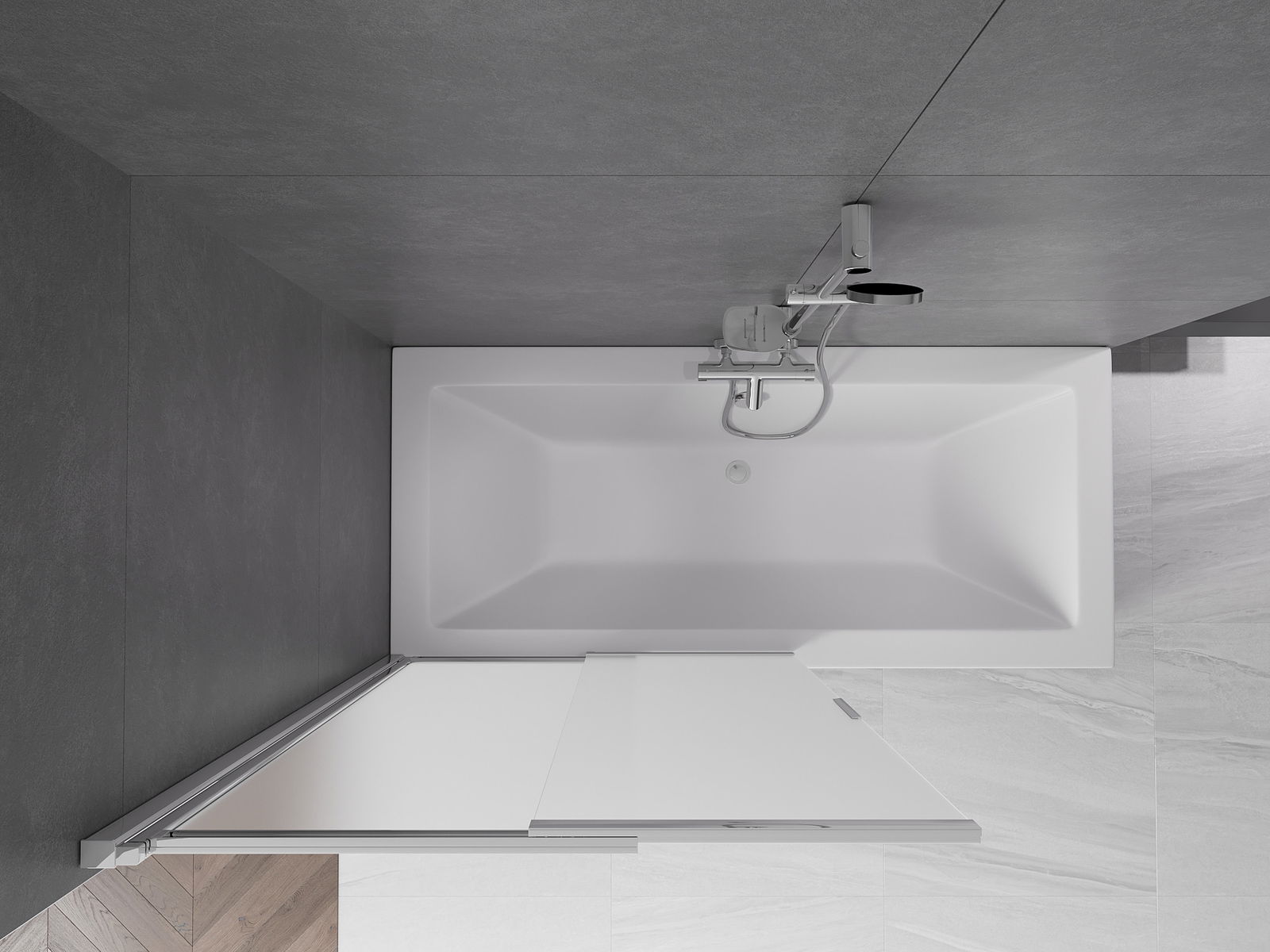 Le paravent coulissant est une solution pratique qui permet d'économiser de l'espace, car il ne nécessite pas de place supplémentaire pour l'ouverture. Sa conception repose sur un système de rails qui permettent un déplacement fluide de l'aile, tandis que les rouleaux intégrés offrent une protection contre l'ingérence de la saleté et du calcaire dans les éléments de roulement.