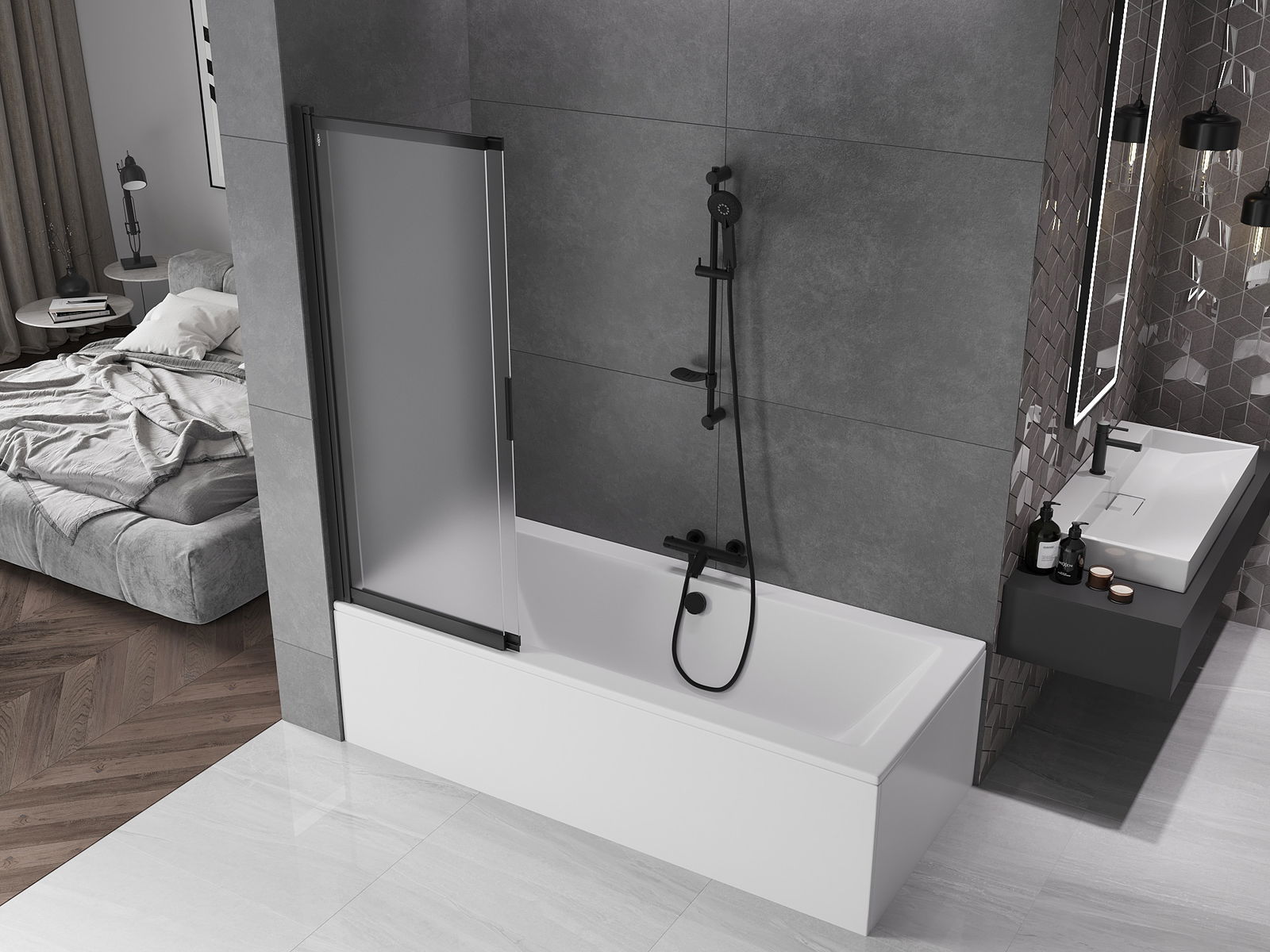 Grâce à l'utilisation d'un système de montage universel, le paravent peut être monté à droite ou à gauche, selon les besoins. De cette façon, vous pouvez facilement concevoir une douche adaptée à l'espace de votre salle de bains.