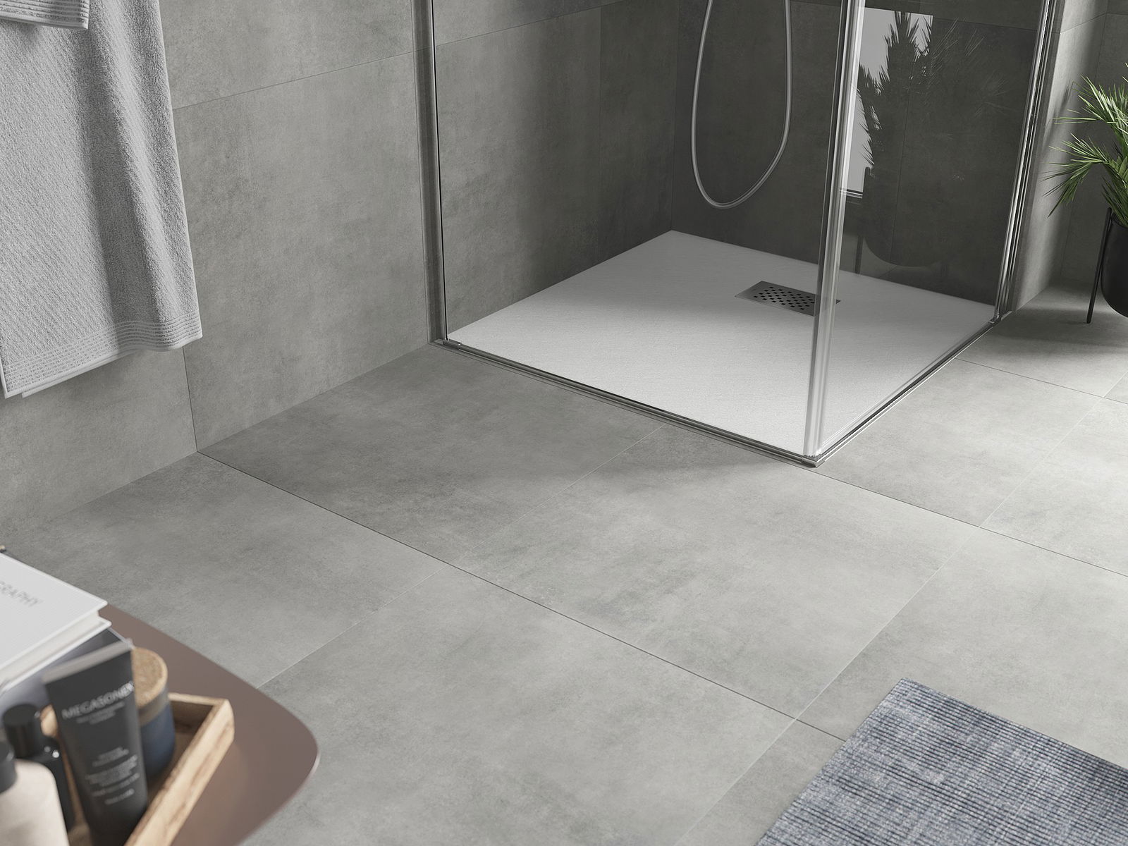 La surface du receveur de douche rappelle par sa structure la pierre. Elle constitue une combinaison exceptionnelle d'un aspect naturel et d'un aménagement intérieur moderne. Elle ajoute du caractère, souligne l'esthétique et l'élégance de la décoration de la salle de bains et séduit par sa forme.