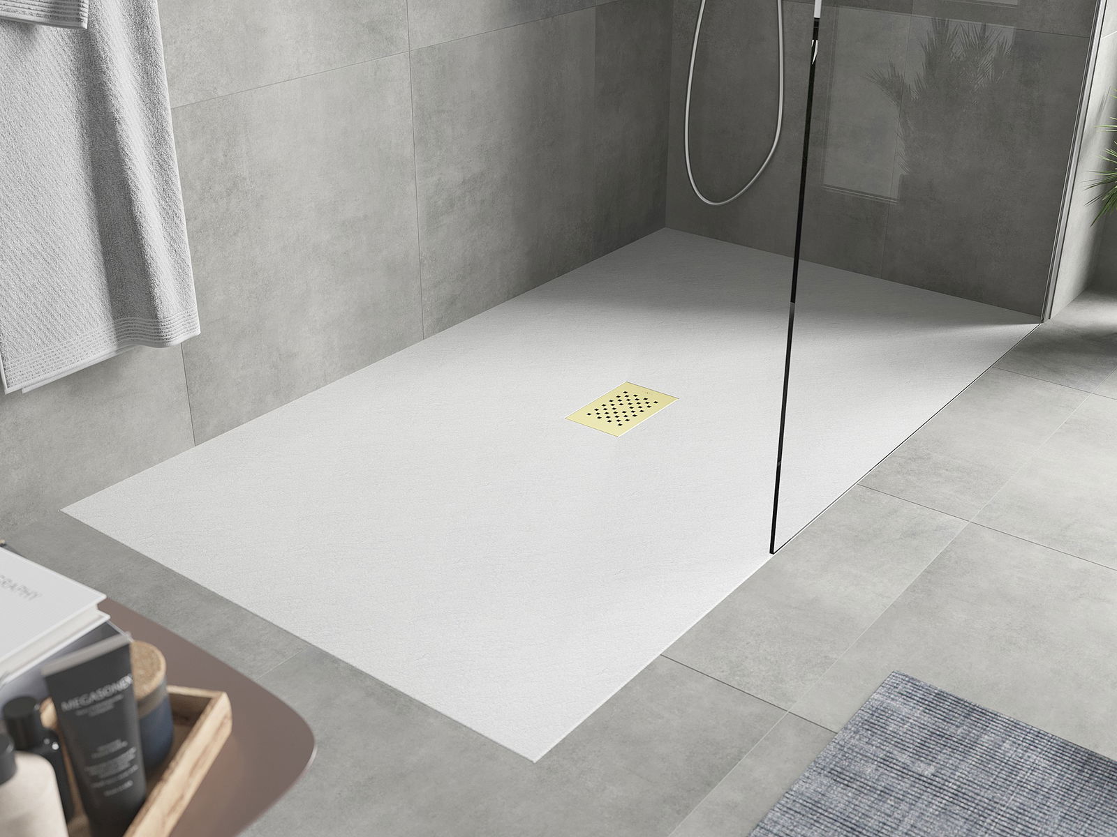 La surface du receveur de douche rappelle par sa structure la pierre. Elle constitue une combinaison exceptionnelle d'un aspect naturel et d'un aménagement intérieur moderne. Elle ajoute du caractère, souligne l'esthétique et l'élégance de la décoration de la salle de bains et séduit par sa forme.