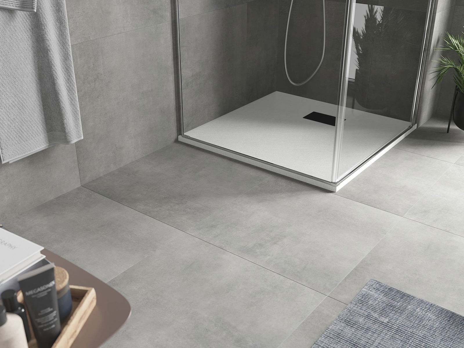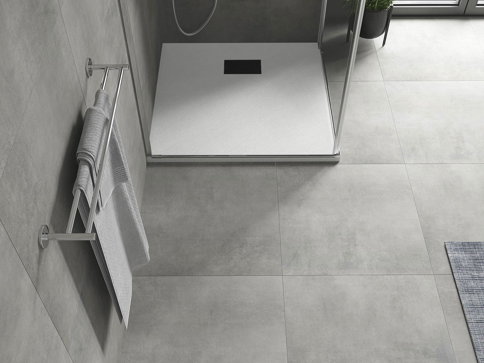La surface du receveur de douche rappelle par sa structure la pierre. Elle constitue une combinaison exceptionnelle d'un aspect naturel et d'un aménagement intérieur moderne. Elle ajoute du caractère, souligne l'esthétique et l'élégance de la décoration de la salle de bains et séduit par sa forme.