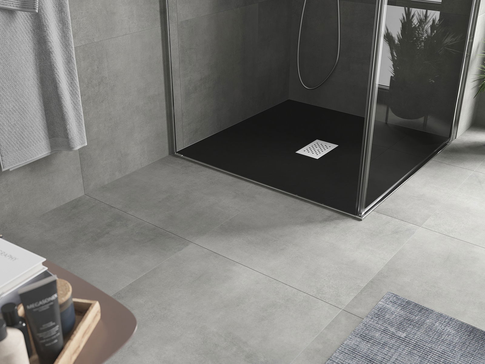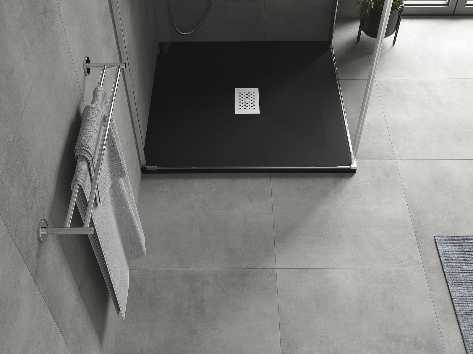 La surface du receveur de douche rappelle par sa structure la pierre. Elle constitue une combinaison exceptionnelle d'un aspect naturel et d'un aménagement intérieur moderne. Elle ajoute du caractère, souligne l'esthétique et l'élégance de la décoration de la salle de bains et séduit par sa forme.