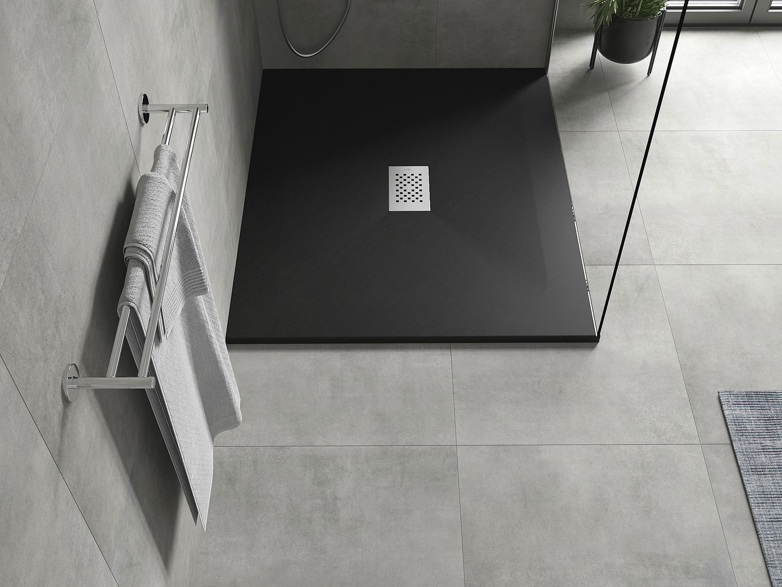 La surface du receveur de douche rappelle par sa structure la pierre. Elle constitue une combinaison exceptionnelle d'un aspect naturel et d'un aménagement intérieur moderne. Elle ajoute du caractère, souligne l'esthétique et l'élégance de la décoration de la salle de bains et séduit par sa forme.