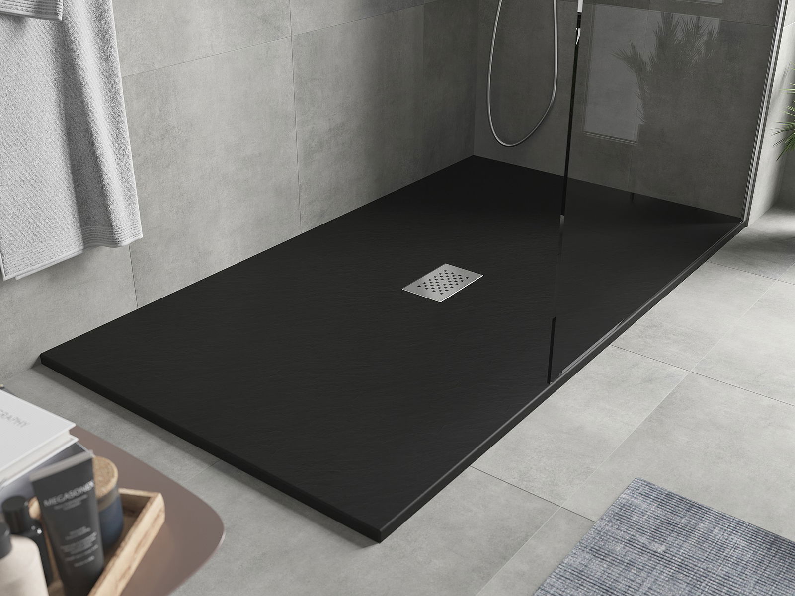 La surface du receveur de douche rappelle par sa structure la pierre. Elle constitue une combinaison exceptionnelle d'un aspect naturel et d'un aménagement intérieur moderne. Elle ajoute du caractère, souligne l'esthétique et l'élégance de la décoration de la salle de bains et séduit par sa forme.