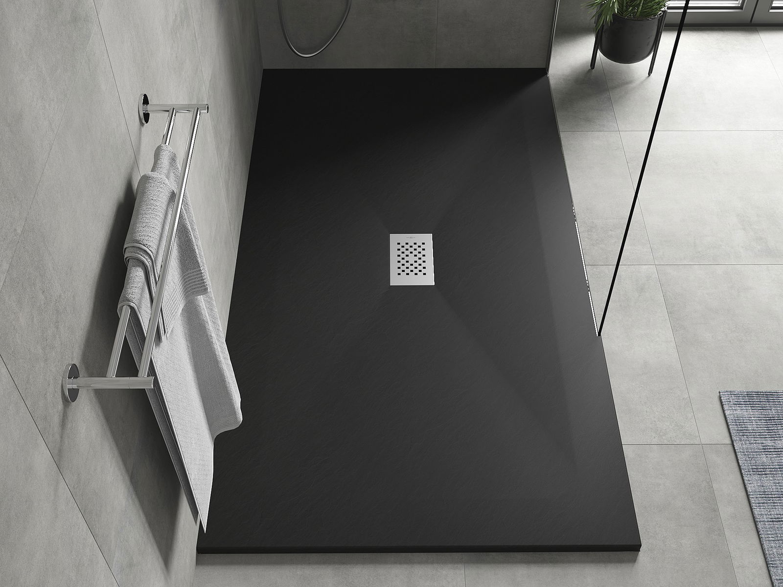 La surface du receveur de douche rappelle par sa structure la pierre. Elle constitue une combinaison exceptionnelle d'un aspect naturel et d'un aménagement intérieur moderne. Elle ajoute du caractère, souligne l'esthétique et l'élégance de la décoration de la salle de bains et séduit par sa forme.