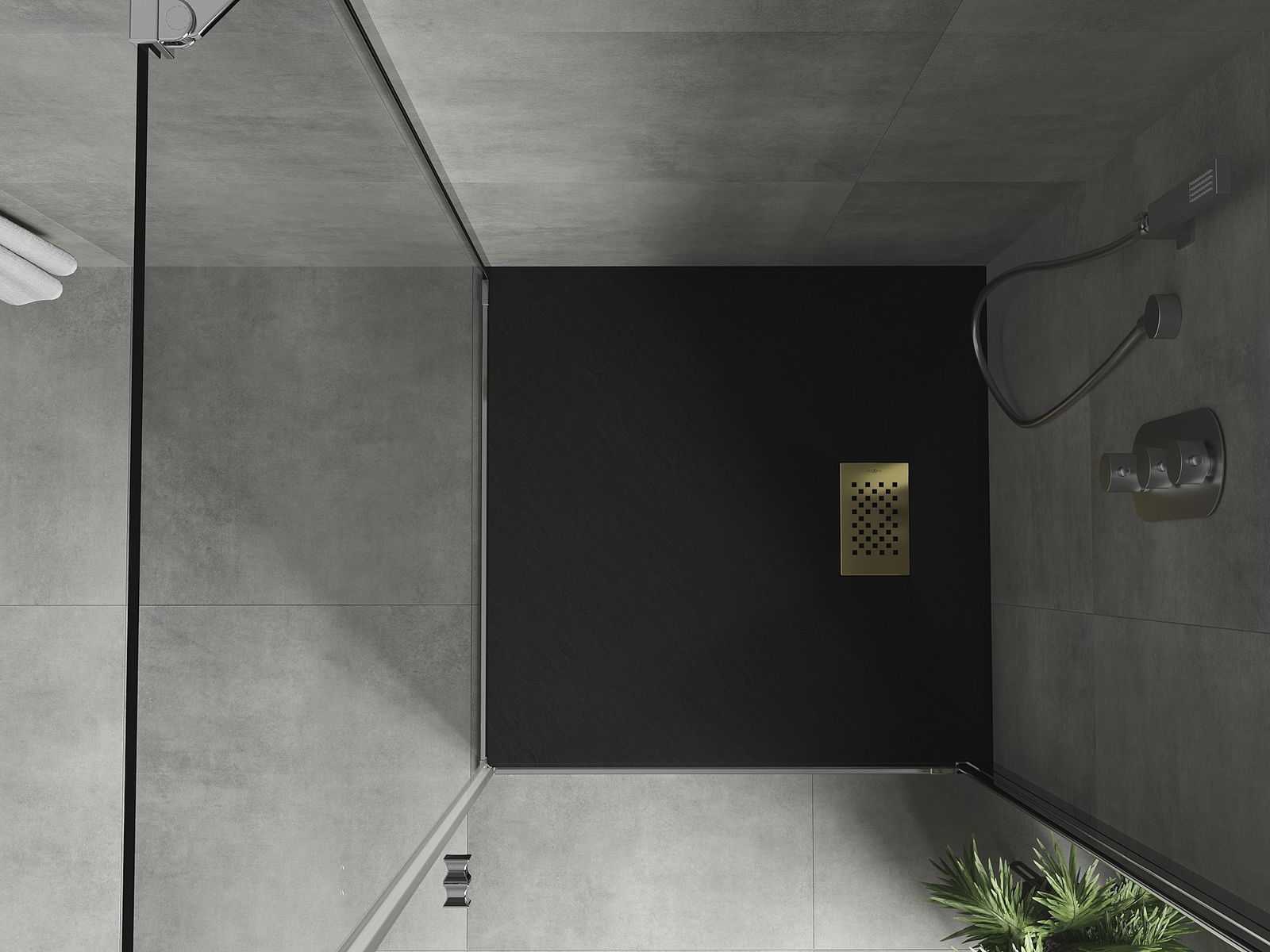 Mexen Hugo receveur de douche carré SMC 90 x 90 cm, noir, cache doré - 42709090-G
