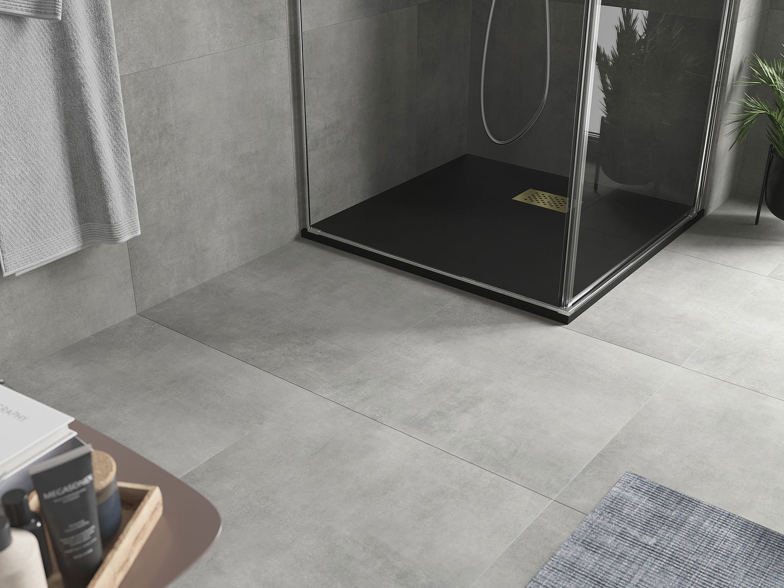 La surface du receveur de douche rappelle par sa structure la pierre. Elle constitue une combinaison exceptionnelle d'un aspect naturel et d'un aménagement intérieur moderne. Elle ajoute du caractère, souligne l'esthétique et l'élégance de la décoration de la salle de bains et séduit par sa forme.