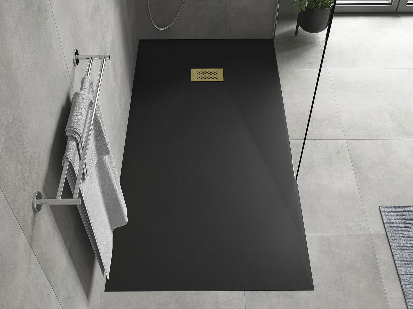 La surface du receveur de douche rappelle par sa structure la pierre. Elle constitue une combinaison exceptionnelle d'un aspect naturel et d'un aménagement intérieur moderne. Elle ajoute du caractère, souligne l'esthétique et l'élégance de la décoration de la salle de bains et séduit par sa forme.