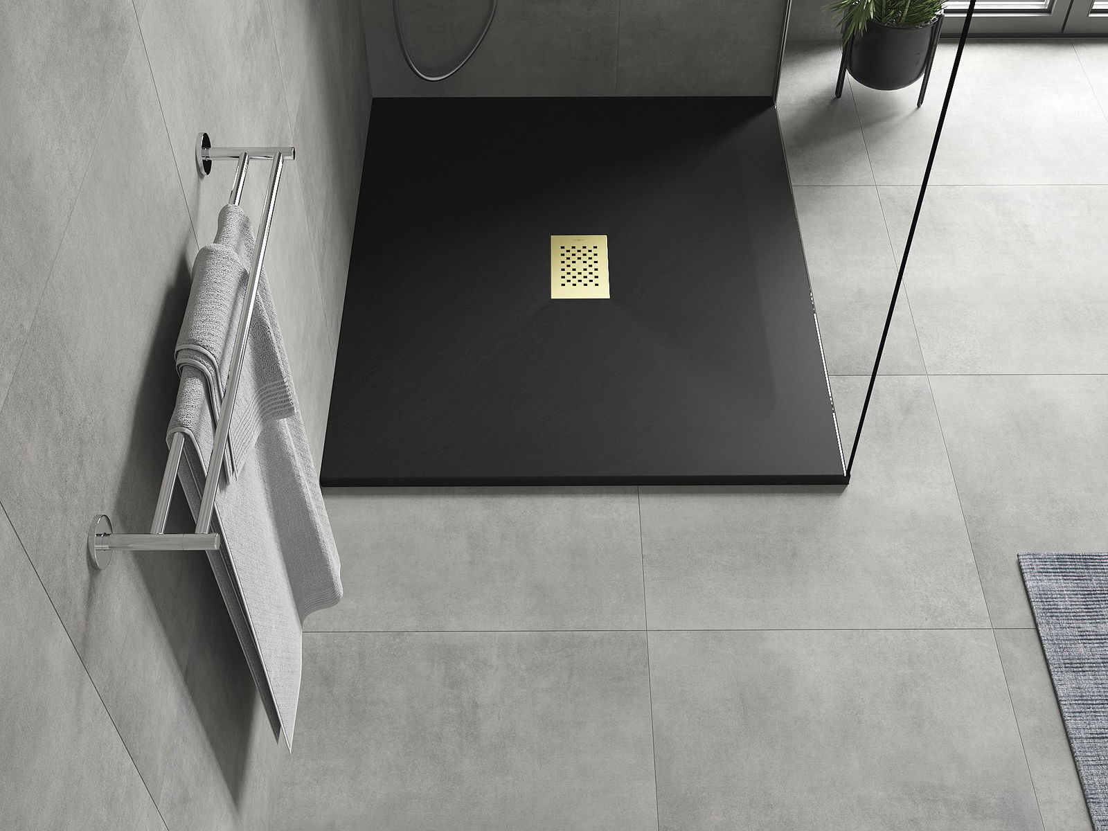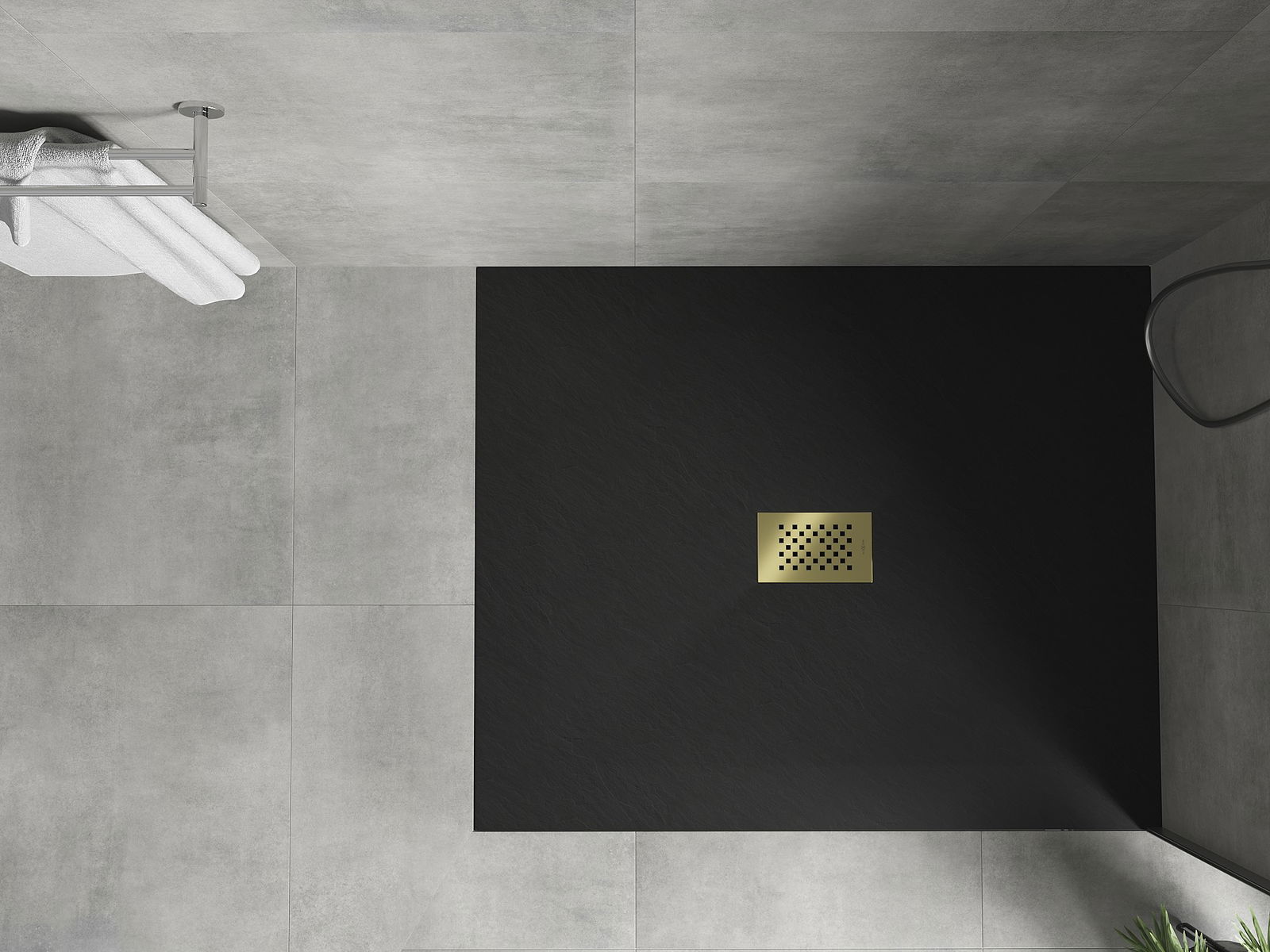 Mexen Hugo receveur de douche rectangulaire SMC 130 x 100 cm, noir, cache doré - 42701013-G
