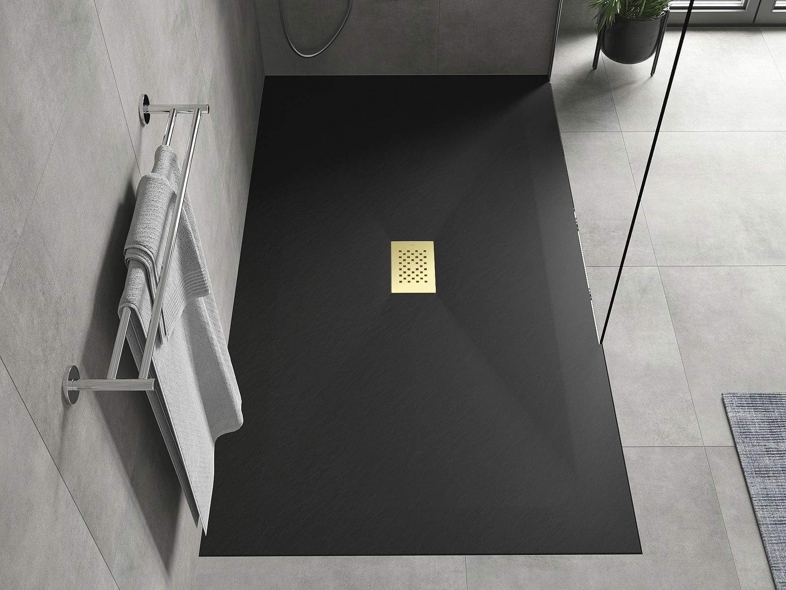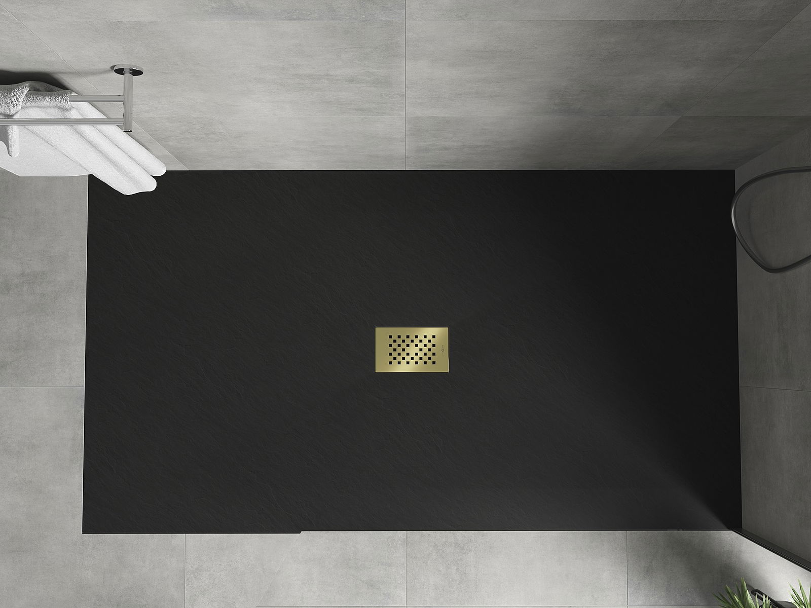 Mexen Hugo receveur de douche rectangulaire SMC 160 x 100 cm, noir, cache doré - 42701016-G