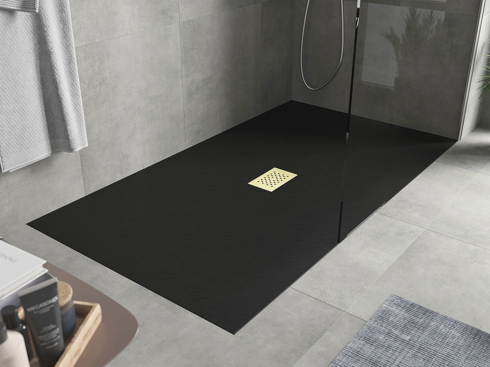 La surface du receveur de douche rappelle par sa structure la pierre. Elle constitue une combinaison exceptionnelle d'un aspect naturel et d'un aménagement intérieur moderne. Elle ajoute du caractère, souligne l'esthétique et l'élégance de la décoration de la salle de bains et séduit par sa forme.