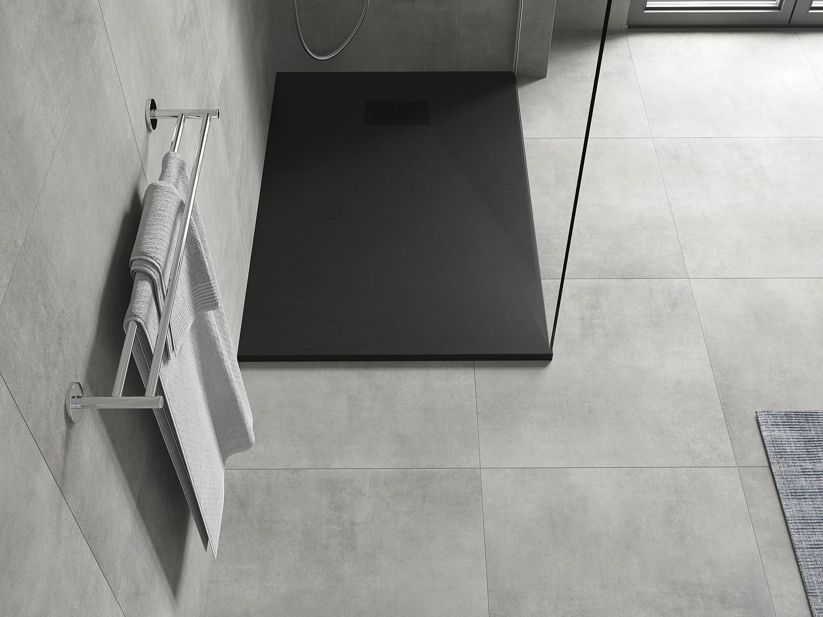 La surface du receveur de douche rappelle par sa structure la pierre. Elle constitue une combinaison exceptionnelle d'un aspect naturel et d'un aménagement intérieur moderne. Elle ajoute du caractère, souligne l'esthétique et l'élégance de la décoration de la salle de bains et séduit par sa forme.
