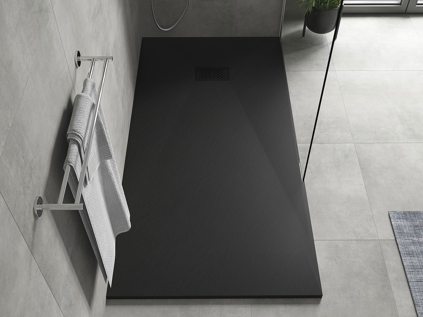 La surface du receveur de douche rappelle par sa structure la pierre. Elle constitue une combinaison exceptionnelle d'un aspect naturel et d'un aménagement intérieur moderne. Elle ajoute du caractère, souligne l'esthétique et l'élégance de la décoration de la salle de bains et séduit par sa forme.