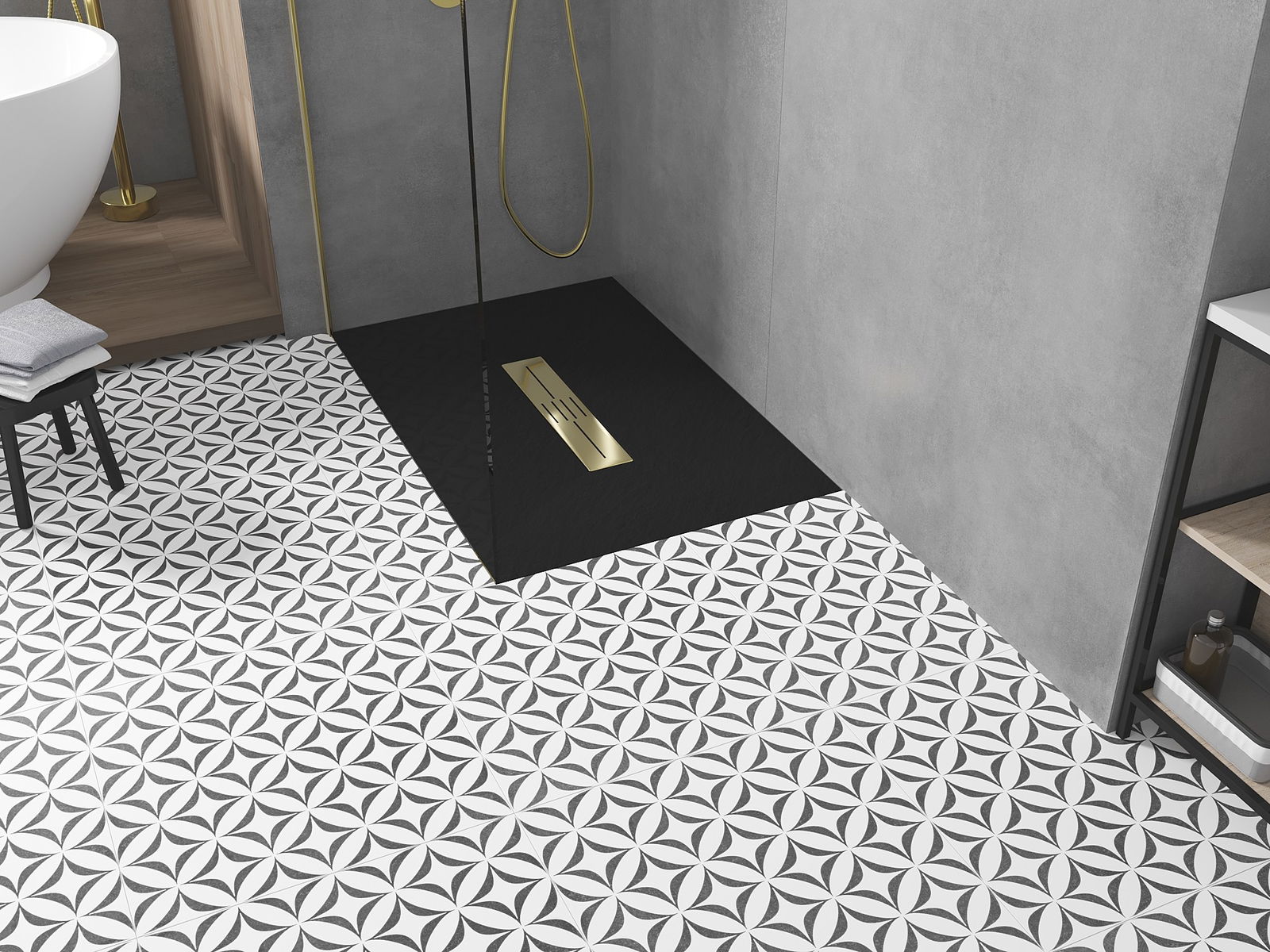 La surface du receveur de douche rappelle par sa structure la pierre. Elle constitue une combinaison exceptionnelle d'un aspect naturel et d'un aménagement intérieur moderne. Elle ajoute du caractère, souligne l'esthétique et l'élégance de la décoration de la salle de bains et séduit par sa forme.