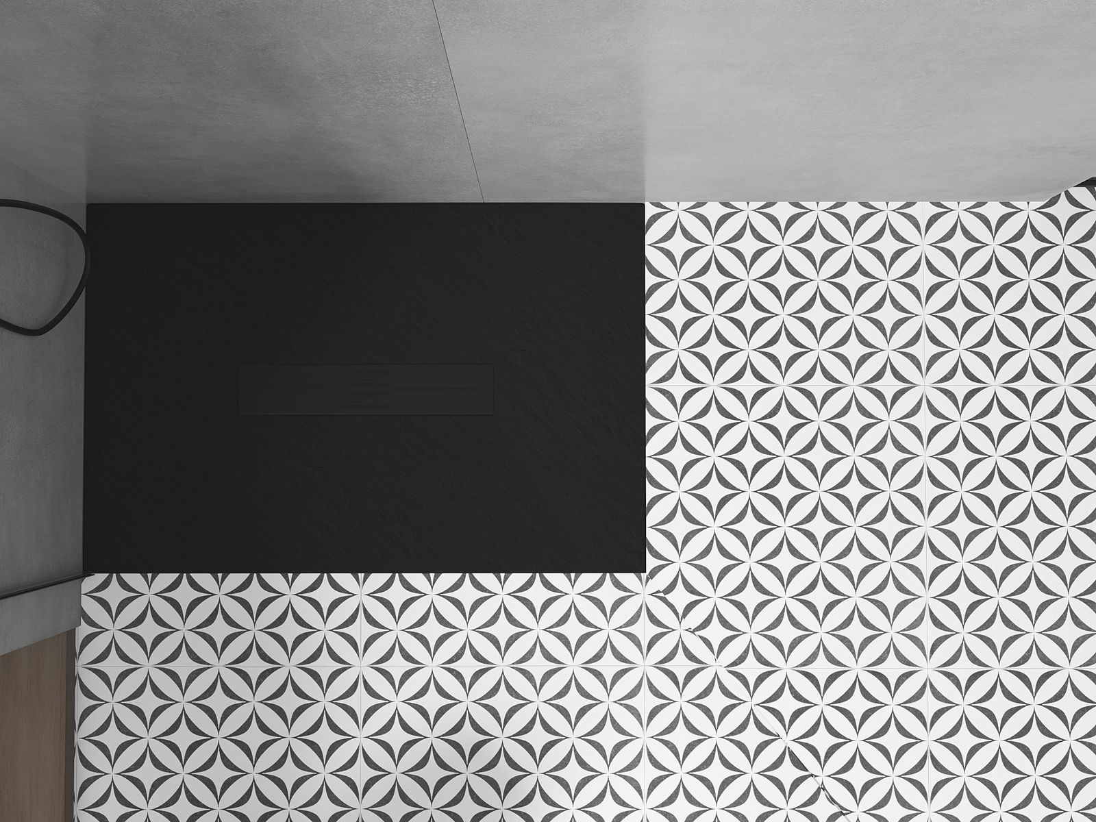 La surface du receveur de douche rappelle par sa structure la pierre. Elle constitue une combinaison exceptionnelle d'un aspect naturel et d'un aménagement intérieur moderne. Elle ajoute du caractère, souligne l'esthétique et l'élégance de la décoration de la salle de bains et séduit par sa forme.