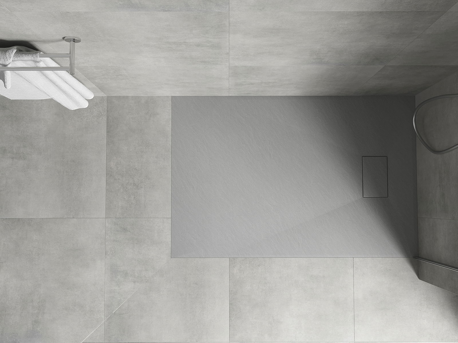 La surface du receveur de douche rappelle par sa structure la pierre. Elle constitue une combinaison exceptionnelle d'un aspect naturel et d'un aménagement intérieur moderne. Elle ajoute du caractère, souligne l'esthétique et l'élégance de la décoration de la salle de bains et séduit par sa forme.