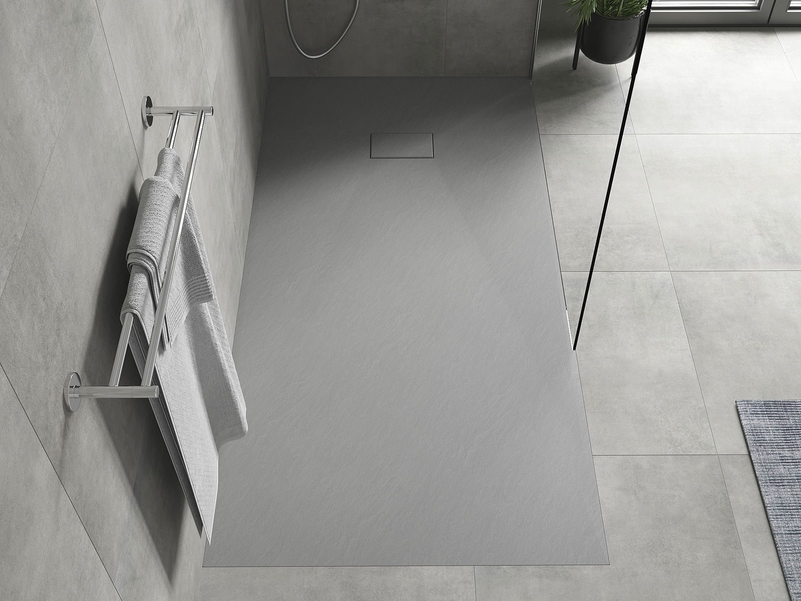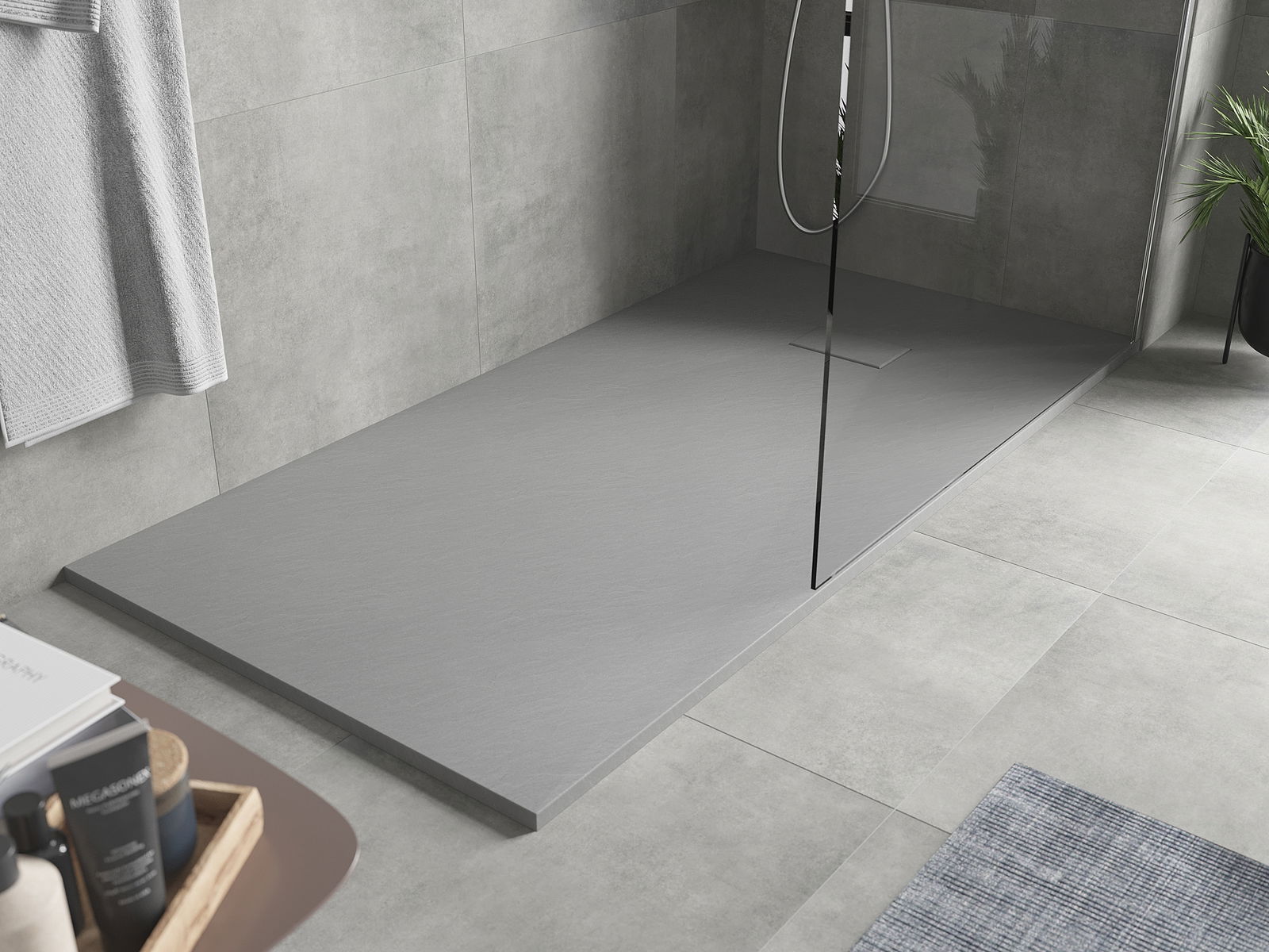 La surface du receveur de douche rappelle par sa structure la pierre. Elle constitue une combinaison exceptionnelle d'un aspect naturel et d'un aménagement intérieur moderne. Elle ajoute du caractère, souligne l'esthétique et l'élégance de la décoration de la salle de bains et séduit par sa forme.