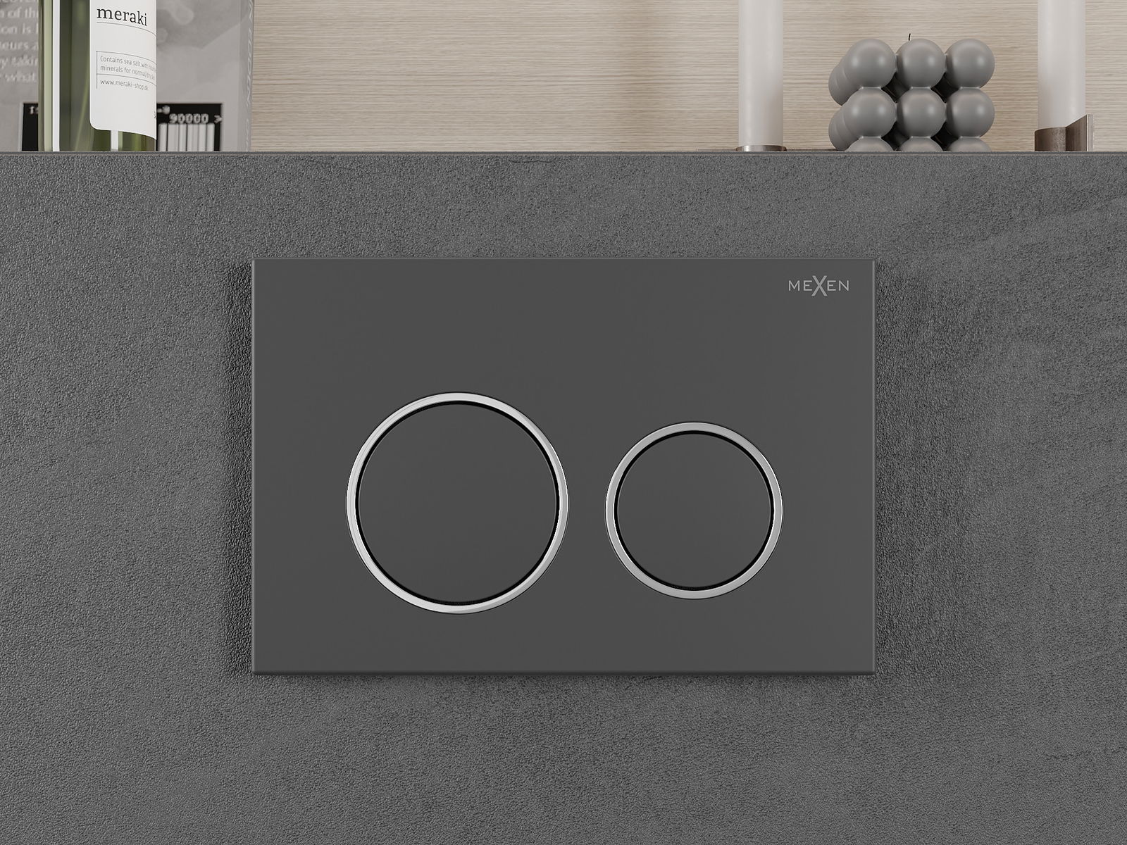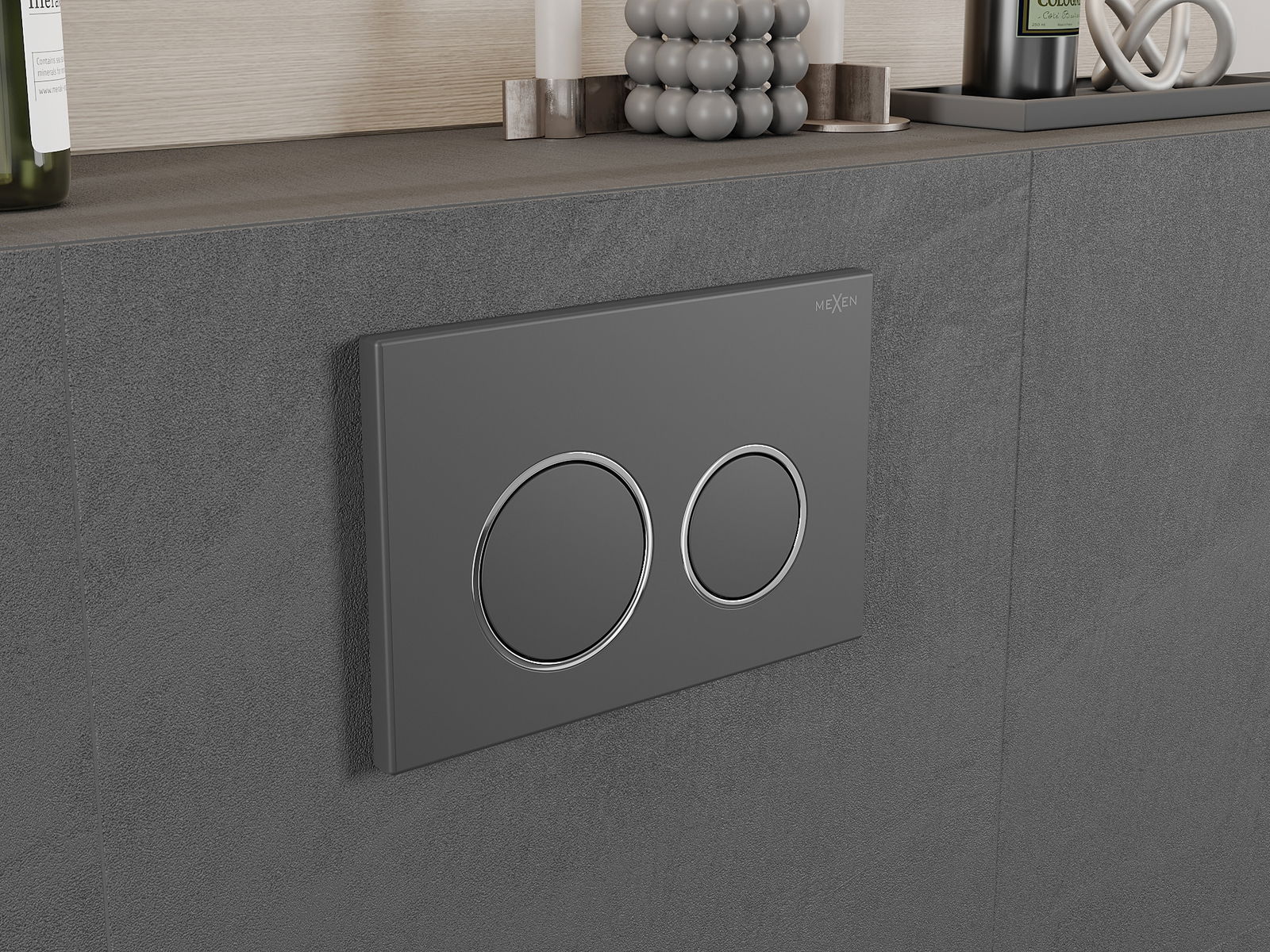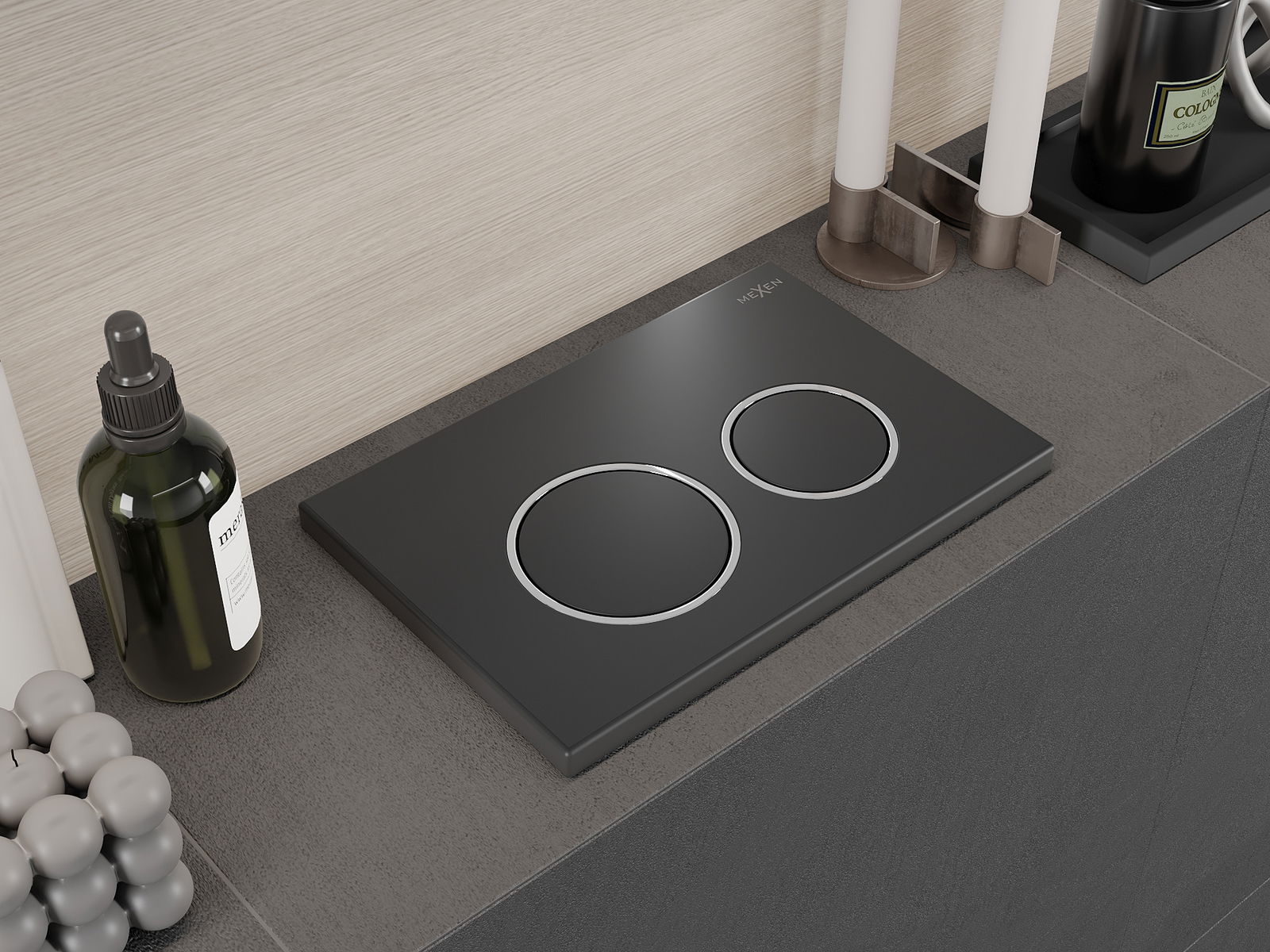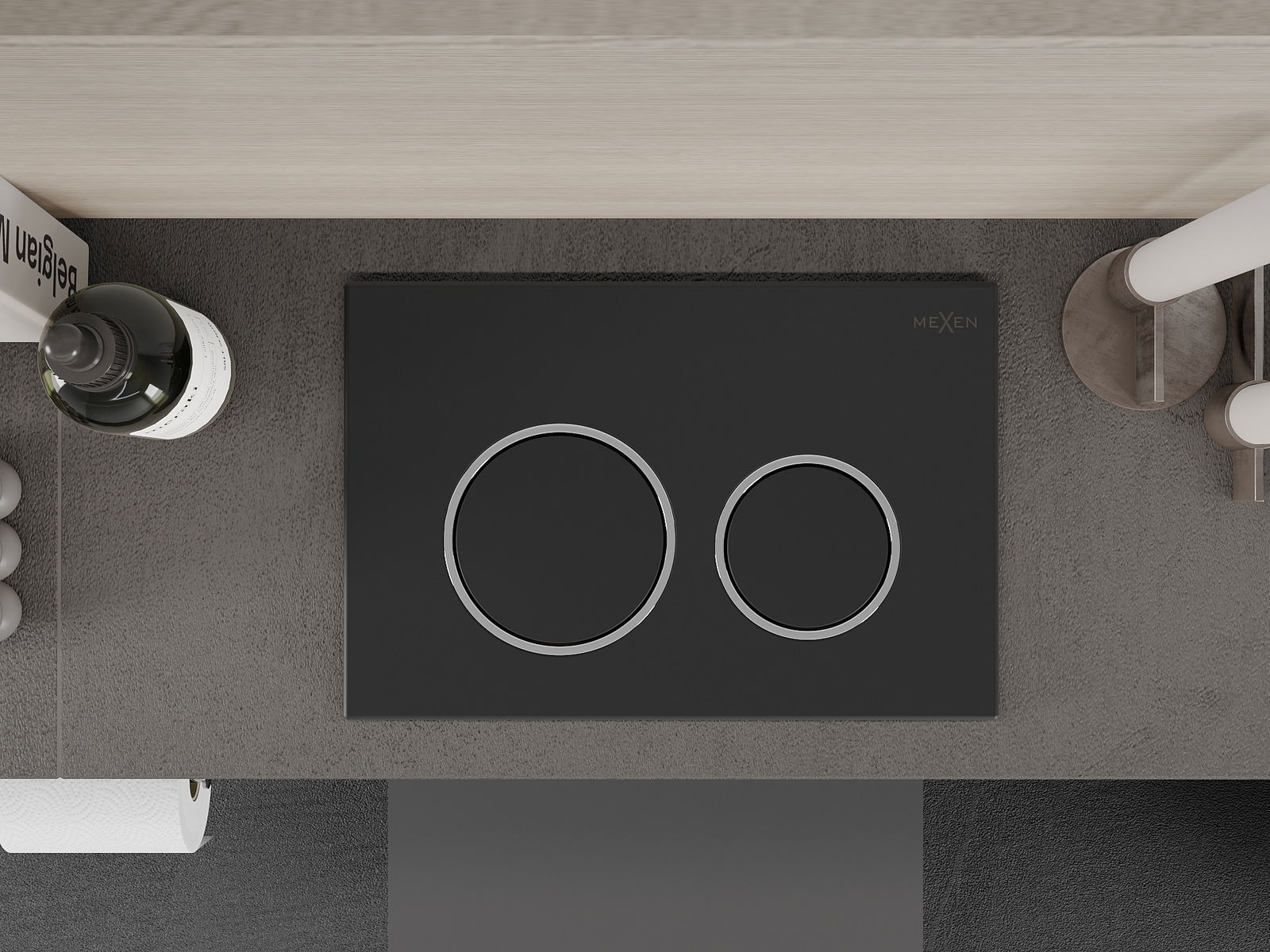 Le bouton est conçu pour les châssis Mexen de la série XS. Il peut être monté à la fois à l'avant et en haut du châssis, ce qui augmente son universalité. Cette solution facilite l'installation dans différentes conditions de montage. Ainsi, le contrôle de la chasse d'eau est pratique et intuitif.