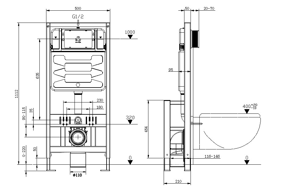 La possibilité de régler la hauteur du châssis permet un meilleur ajustement aux différentes conditions techniques dans la salle de bain. Une plage de réglage flexible assure le confort de l'installation et l'obtention de la hauteur optimale du châssis.