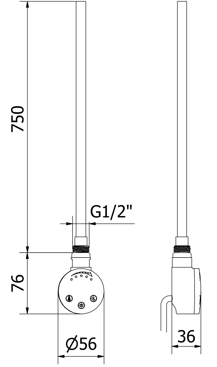 Longueur de l'élément chauffant : 750 mm