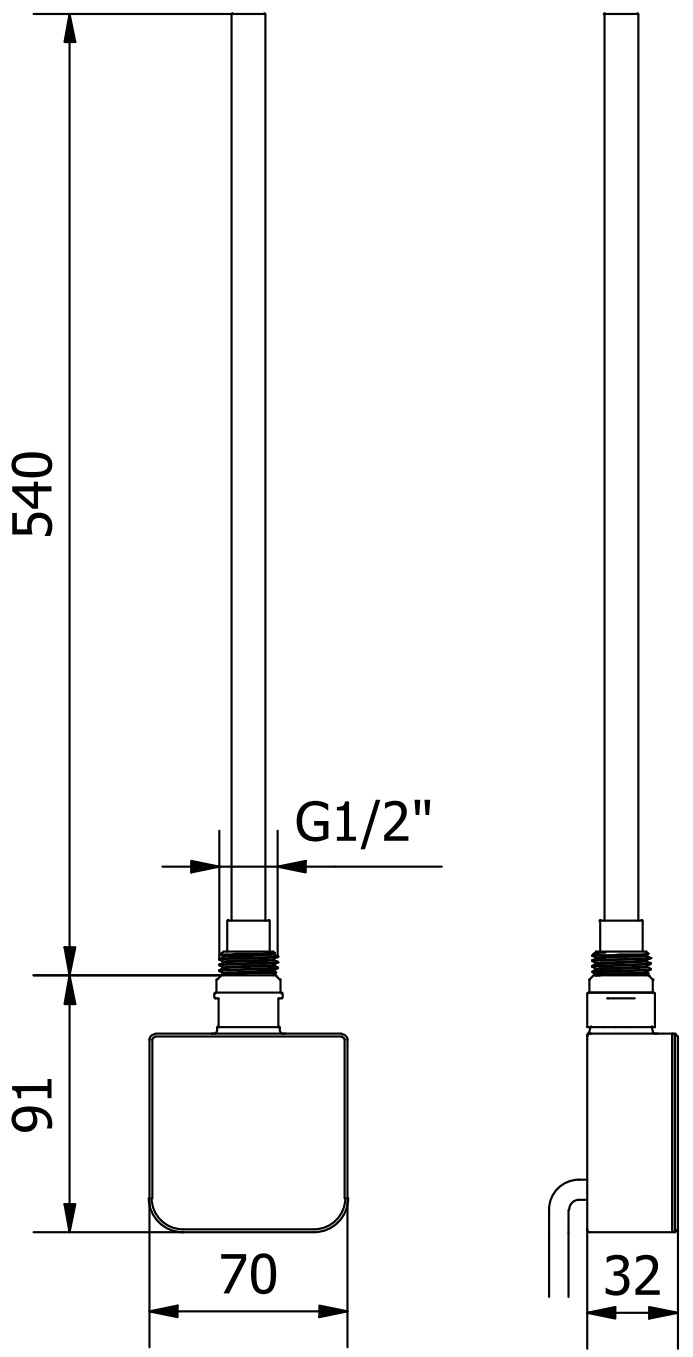 Longueur de l'élément chauffant : 540 mm
