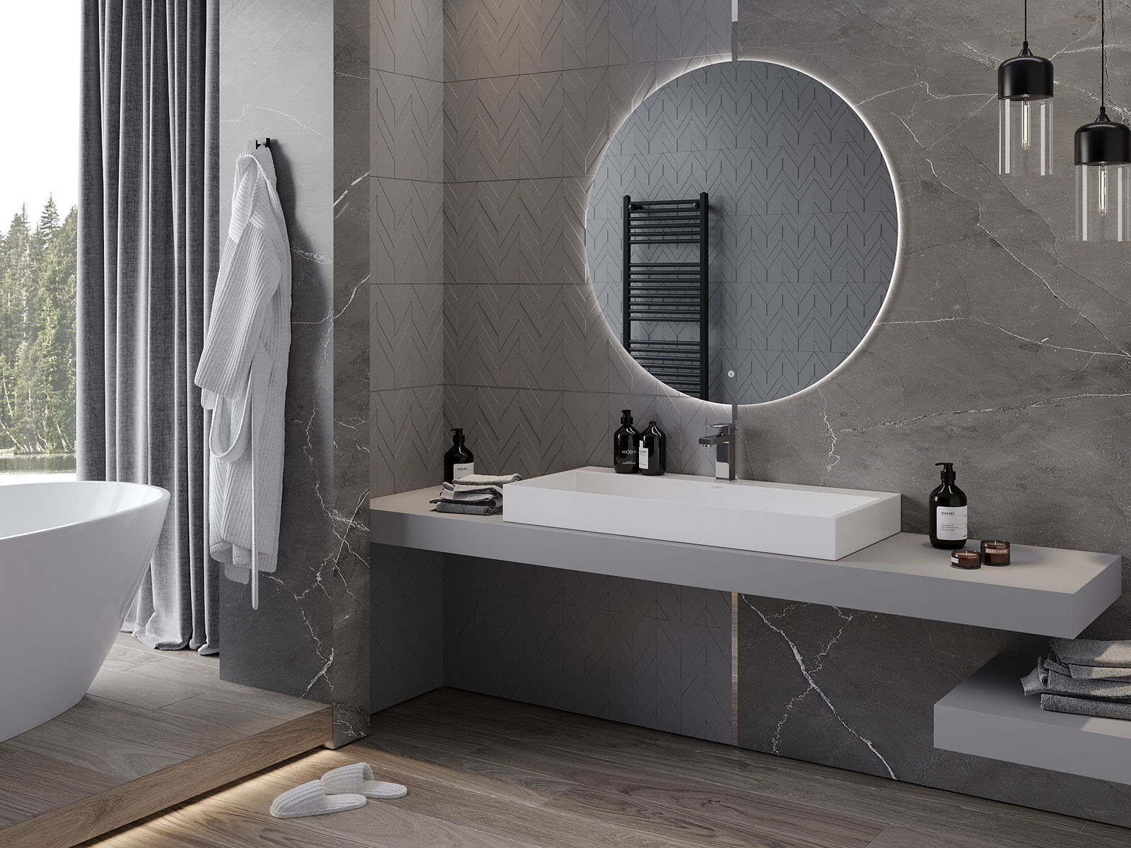 L'éclairage LED près du miroir est un élément pratique qui facilite les soins quotidiens, car il permet d'éclairer parfaitement le visage. Cet éclairage confère à la salle de bains une touche de modernité et souligne son élégance.