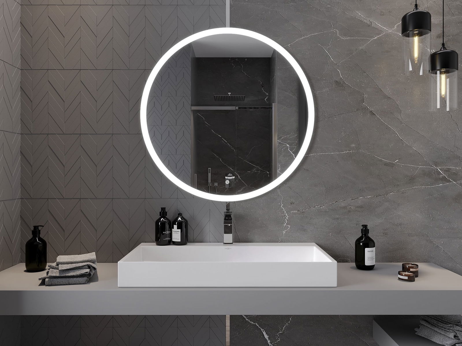 Mexen Oro miroir de salle de bain éclairé, rond 90 cm, LED 6000K, antibuée - 9824-090-090-611-00