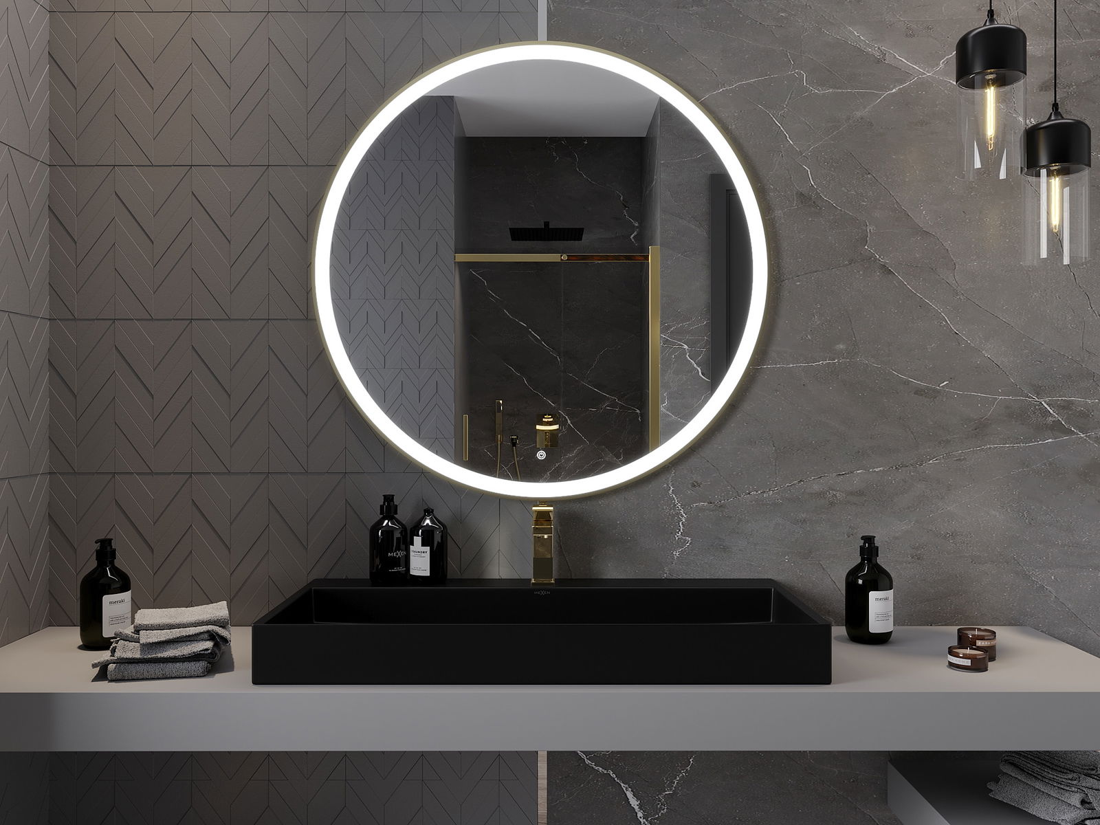 Mexen Esso miroir de salle de bain éclairé, rond 100 cm, LED 6000K, anti-buée, cadre doré - 9825-100-100-611-50