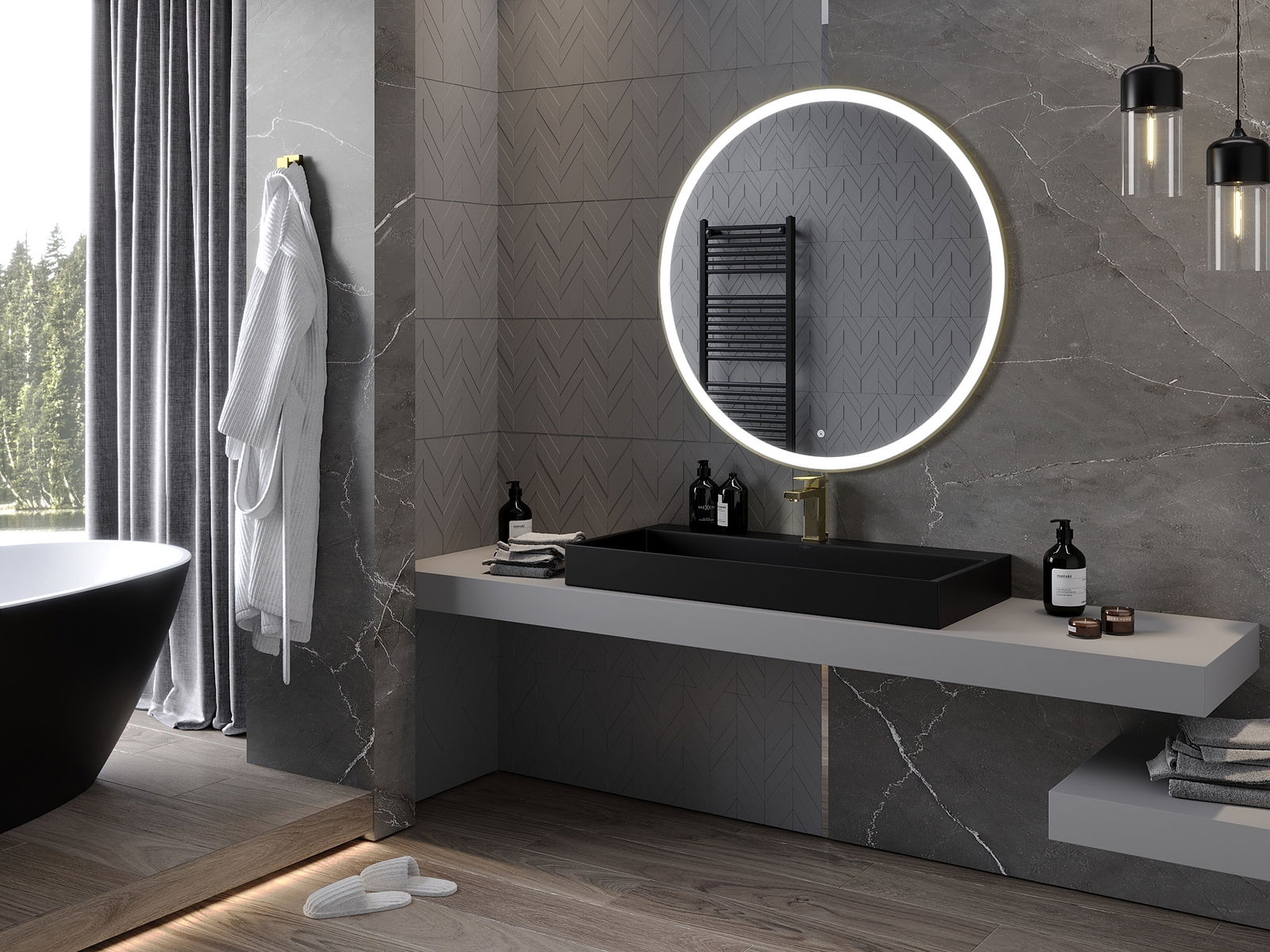 L'éclairage LED près du miroir est un élément pratique qui facilite les soins quotidiens, car il permet d'éclairer parfaitement le visage. Cet éclairage confère à la salle de bains une touche de modernité et souligne son élégance.