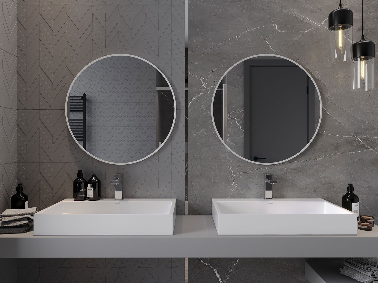 Mexen Loft miroir de salle de bain rond 70 cm, cadre blanc - 9850-070-070-000-20