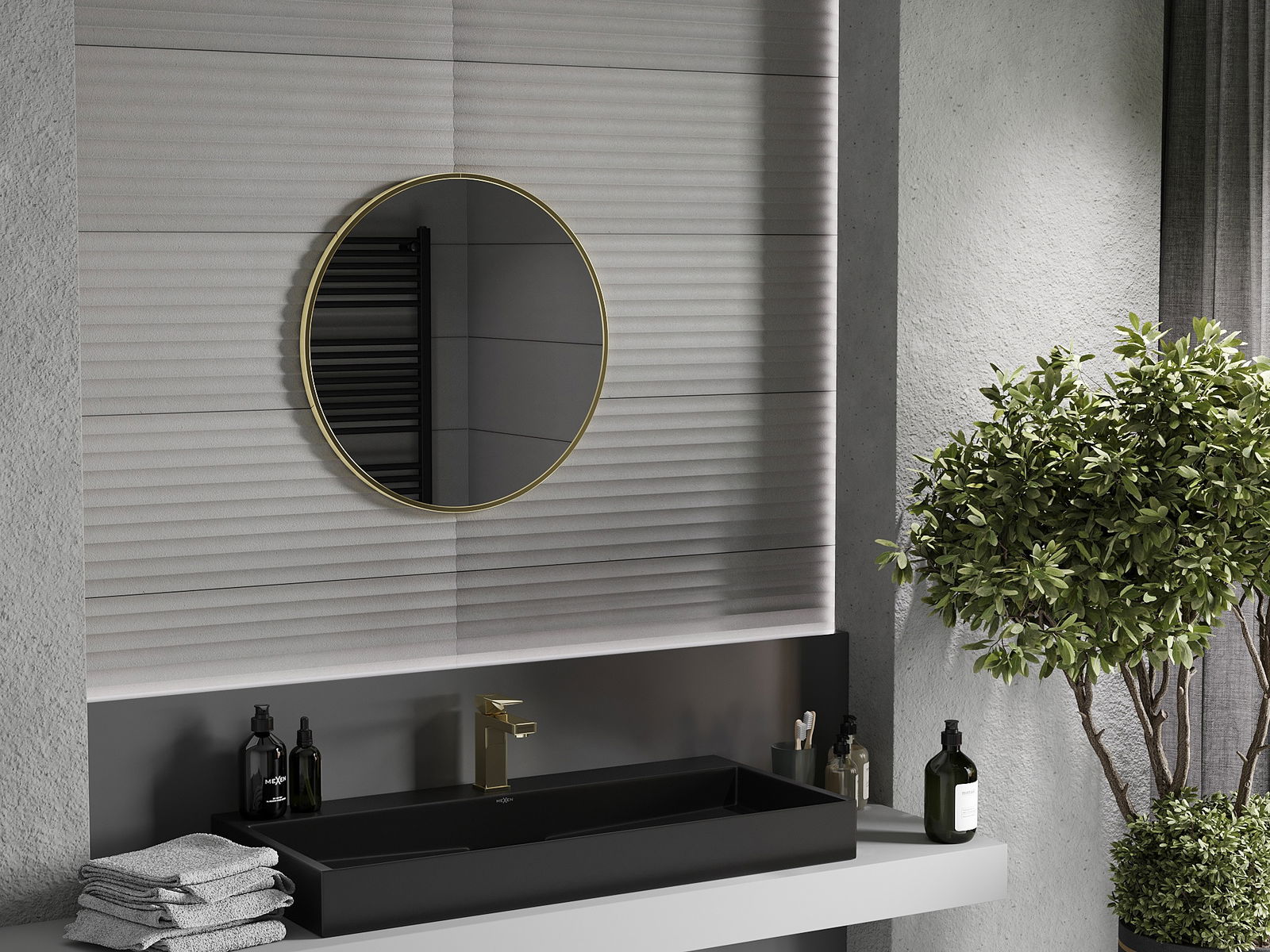 Miroir de salle de bain rond Mexen Loft 60 cm, cadre doré - 9850-060-060-000-50
