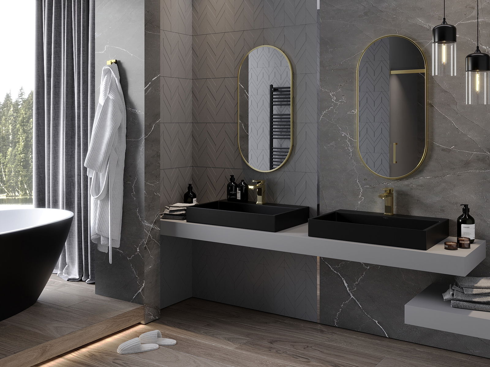 Mexen Loft miroir de salle de bain ovale 90 x 45 cm, cadre doré - 9851-090-045-000-50