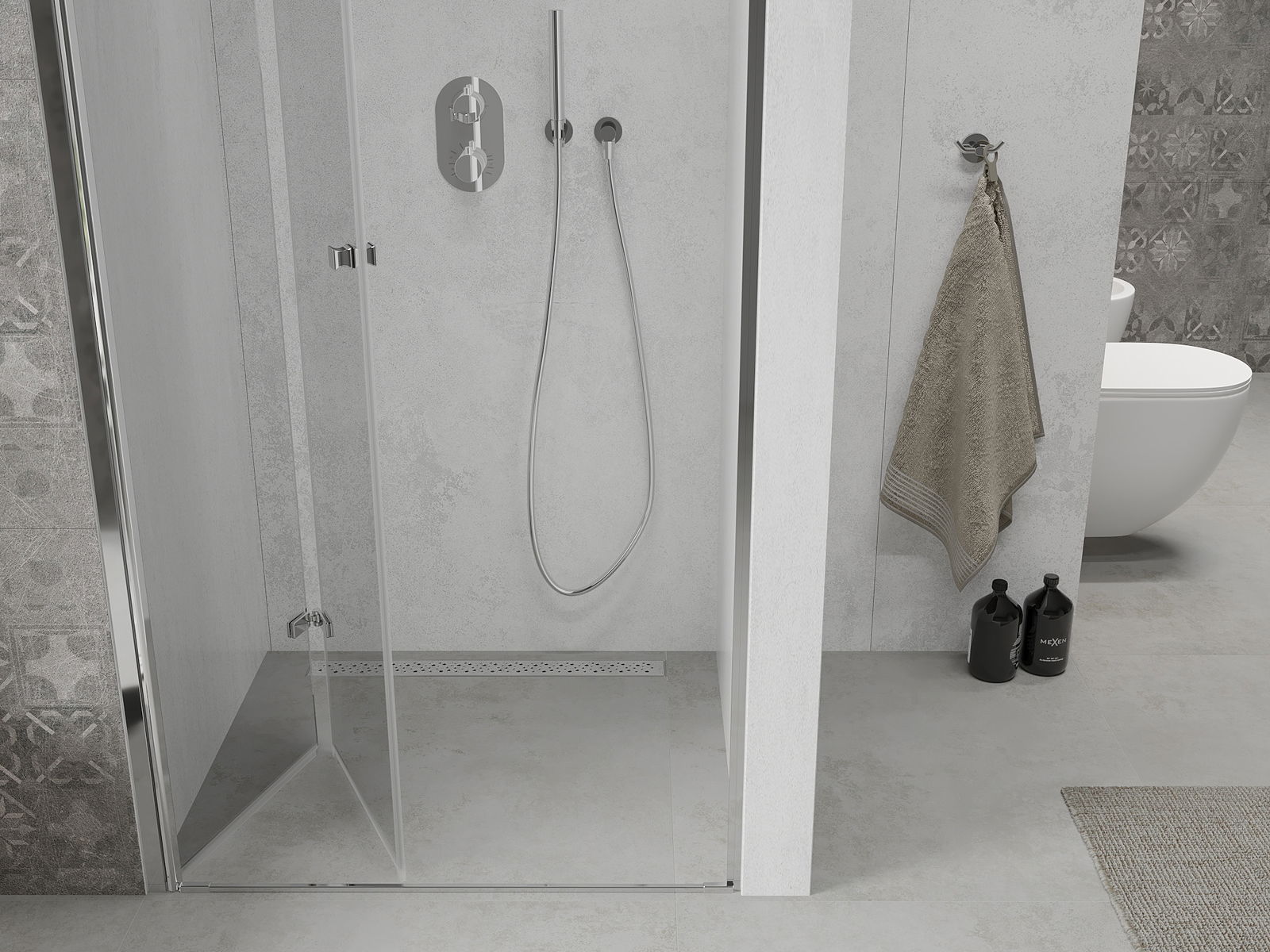 Selon les besoins, le produit peut être installé à la fois sur le receveur de douche et directement sur le sol. La méthode d'installation universelle permet d'adapter le produit à différents types de salles de bains et configurations d'espace.