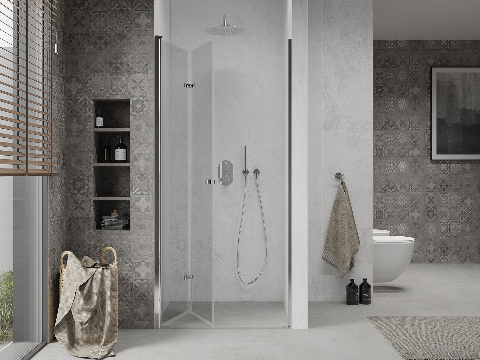 La possibilité de plier les portes, aussi bien vers l'extérieur que vers l'intérieur, permet de gagner plus d'espace lorsque la douche n'est pas utilisée. C'est une solution idéale pour les petites salles de bains, maximisant l'utilisation de l'espace disponible.