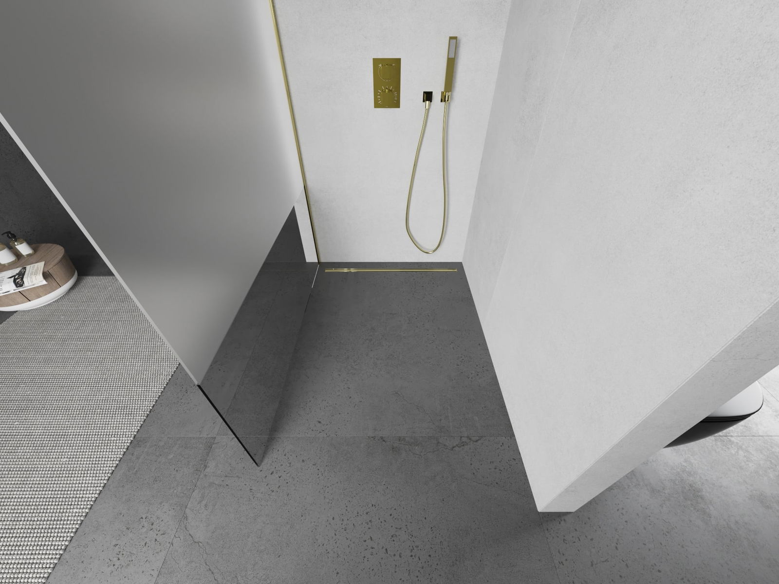 Mexen Kioto paroi de douche Walk-in 90 x 200 cm, transparent/givré 8 mm, or - 800-090-101-50-35