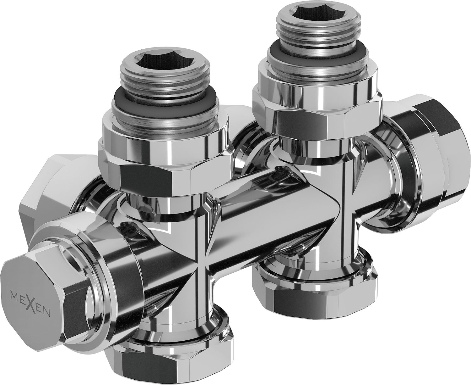 Mexen Uni-Term vanne de radiateur d'angle/droite, Duplex, DN50, chromée - W908-000-01