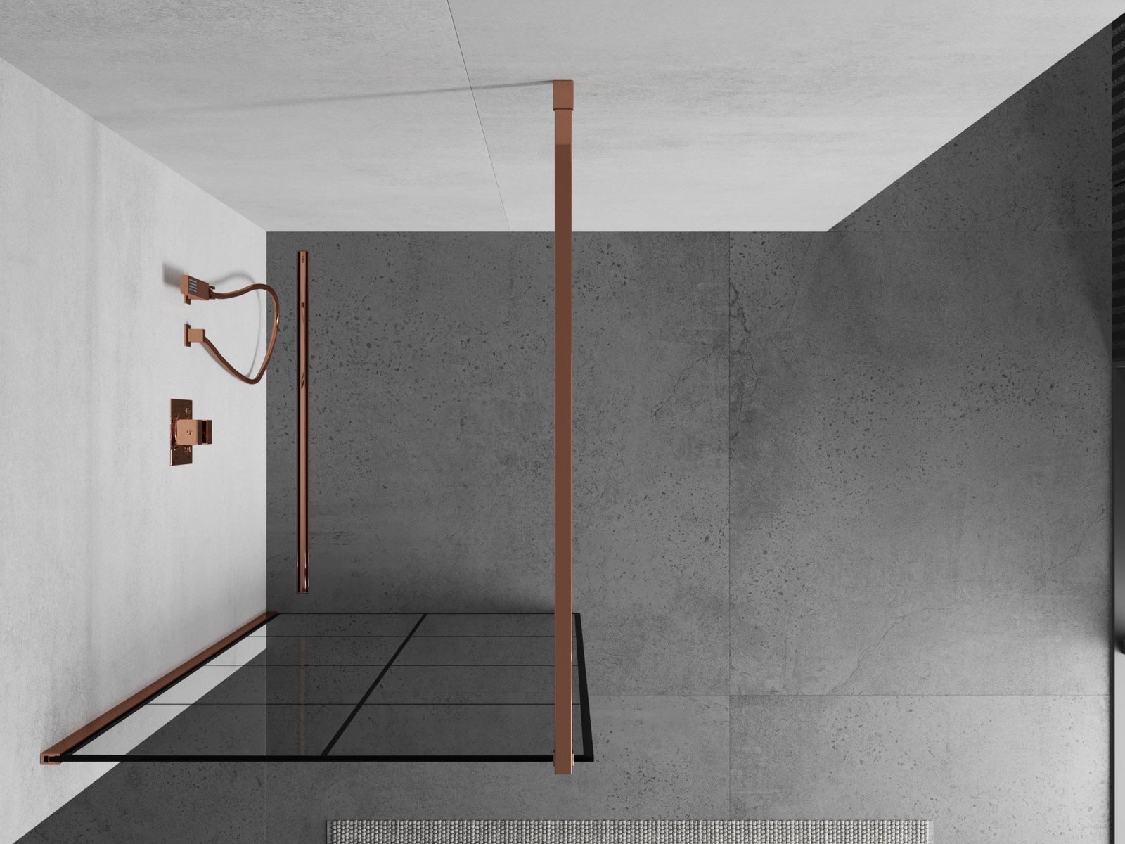 Mexen Kioto paroi de douche Walk-in 80 x 200 cm, grille noire 8 mm, or rose - 800-080-101-60-77