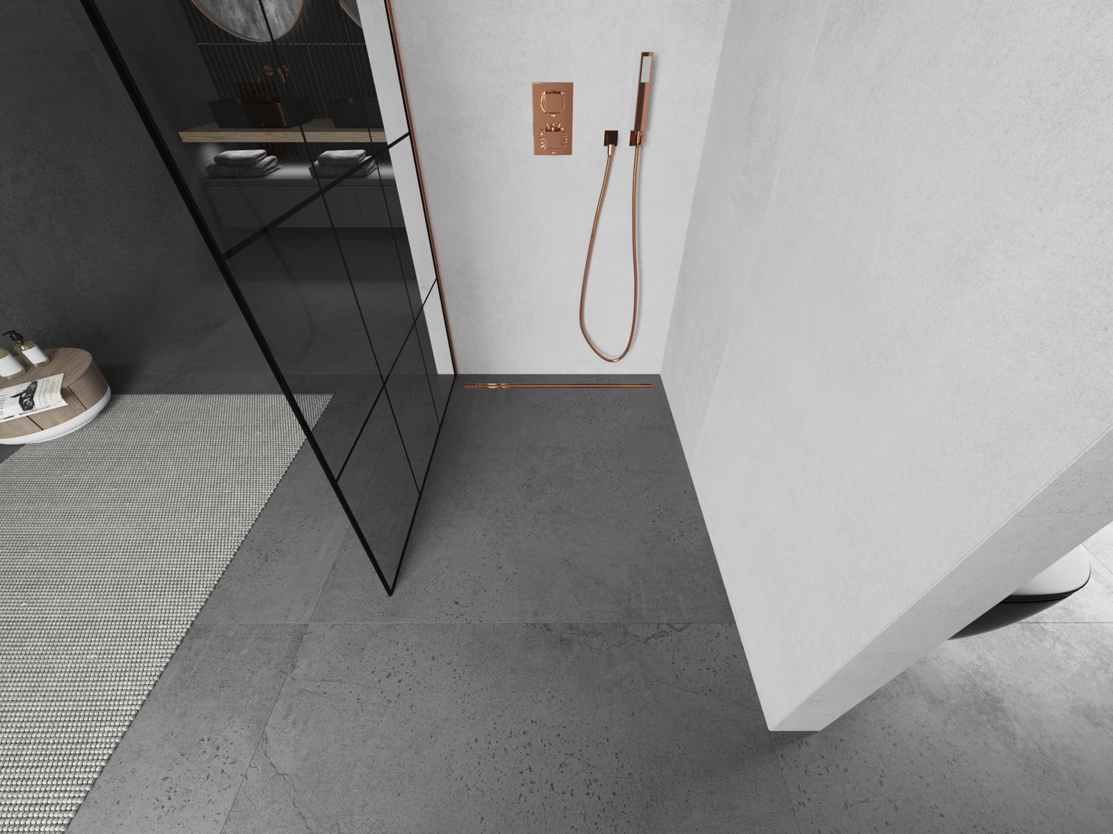 Mexen Kioto paroi de douche Walk-in 120 x 200 cm, grille noire 8 mm, or rose - 800-120-101-60-77