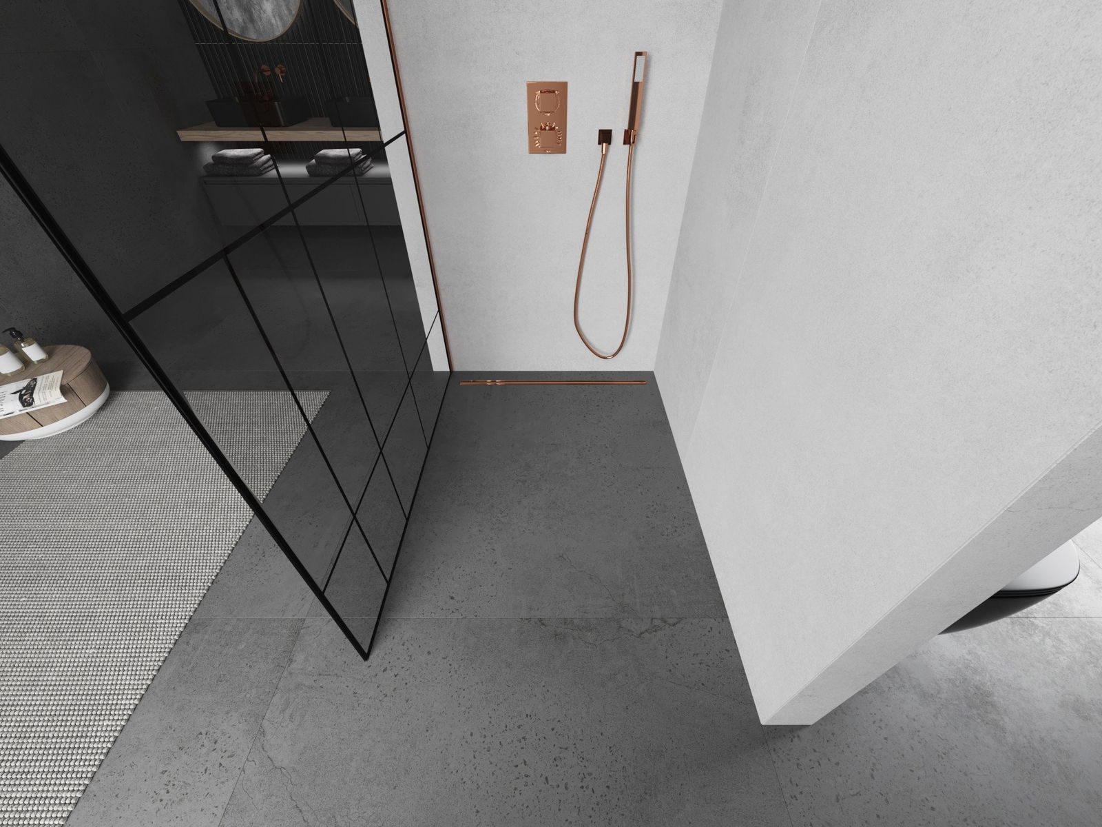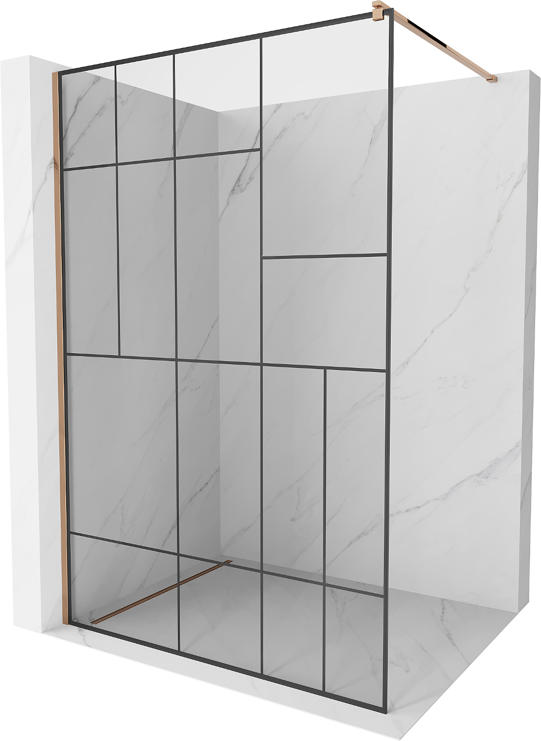 Mexen Kioto paroi de douche Walk-in 140 x 200 cm, motif noir 8 mm, or rose - 800-140-101-60-78