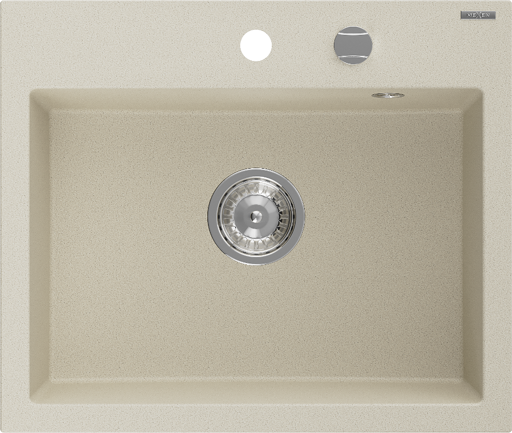 Mexen Oscar évier en granit 1 bac 580 x 490 mm, beige, siphon chromé - 6519581000-69