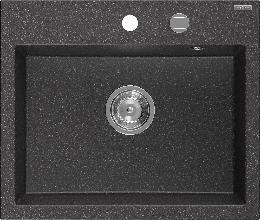 Mexen Oscar évier en granit 1 bac 580 x 490 mm, noir moucheté, siphon chromé - 6519581000-76