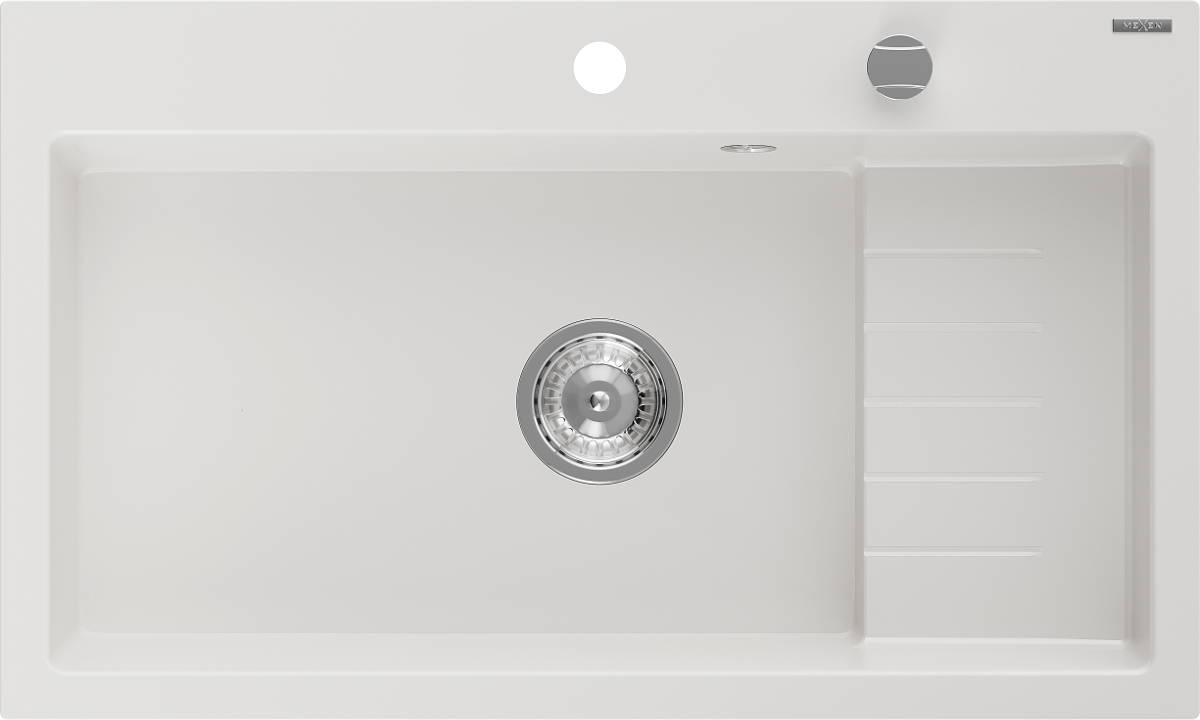 Mexen Omar évier de cuisine en granit 1 bac 800 x 480 mm, blanc, siphon chromé - 6520801005-20