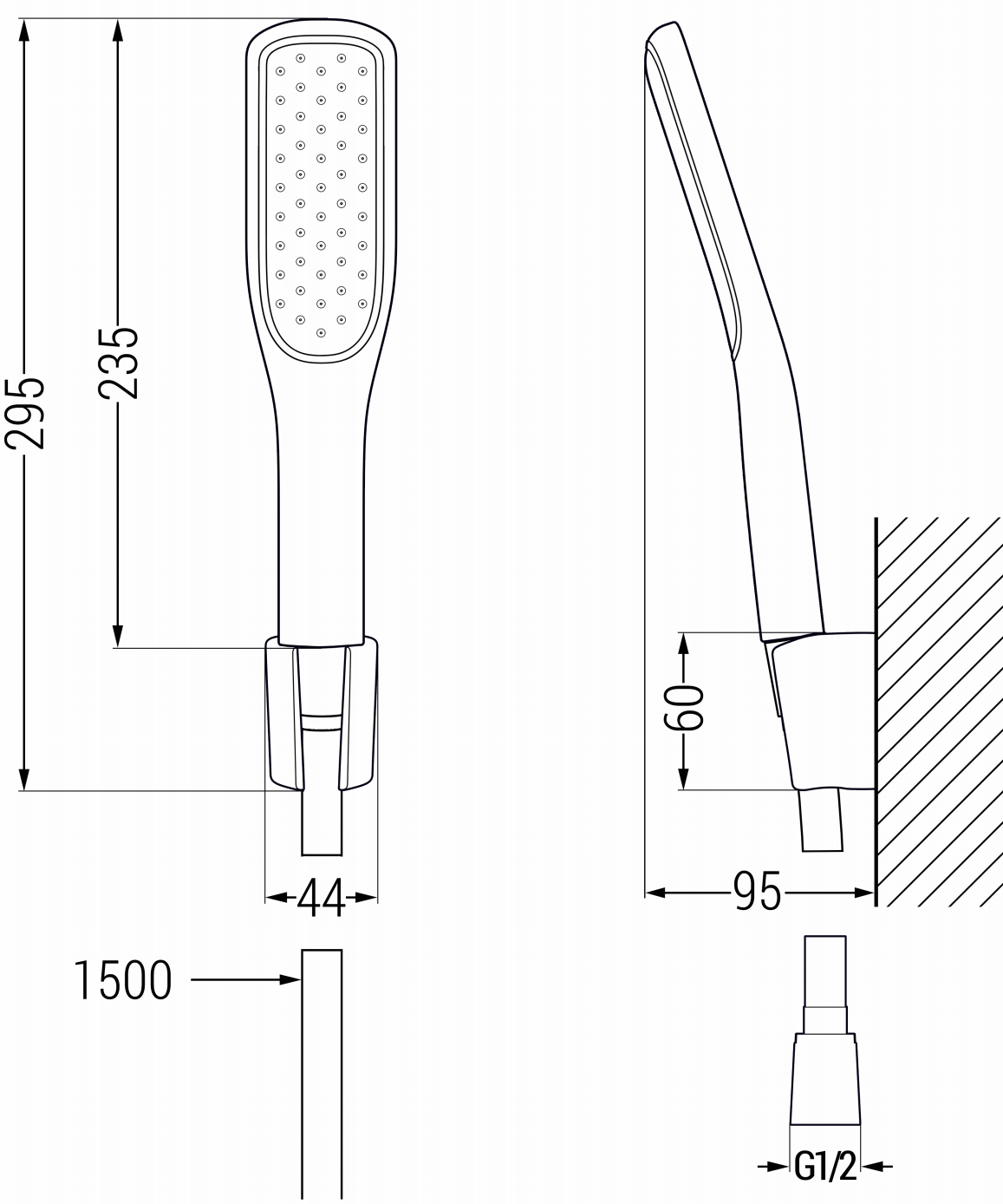 Le pommeau de douche est doté d'un jet pluie. Ce jet imite la pluie naturelle et s'écoule uniformément sur le corps. Il procure une sensation douce et relaxante pendant le bain, qui devient un véritable moment de détente.