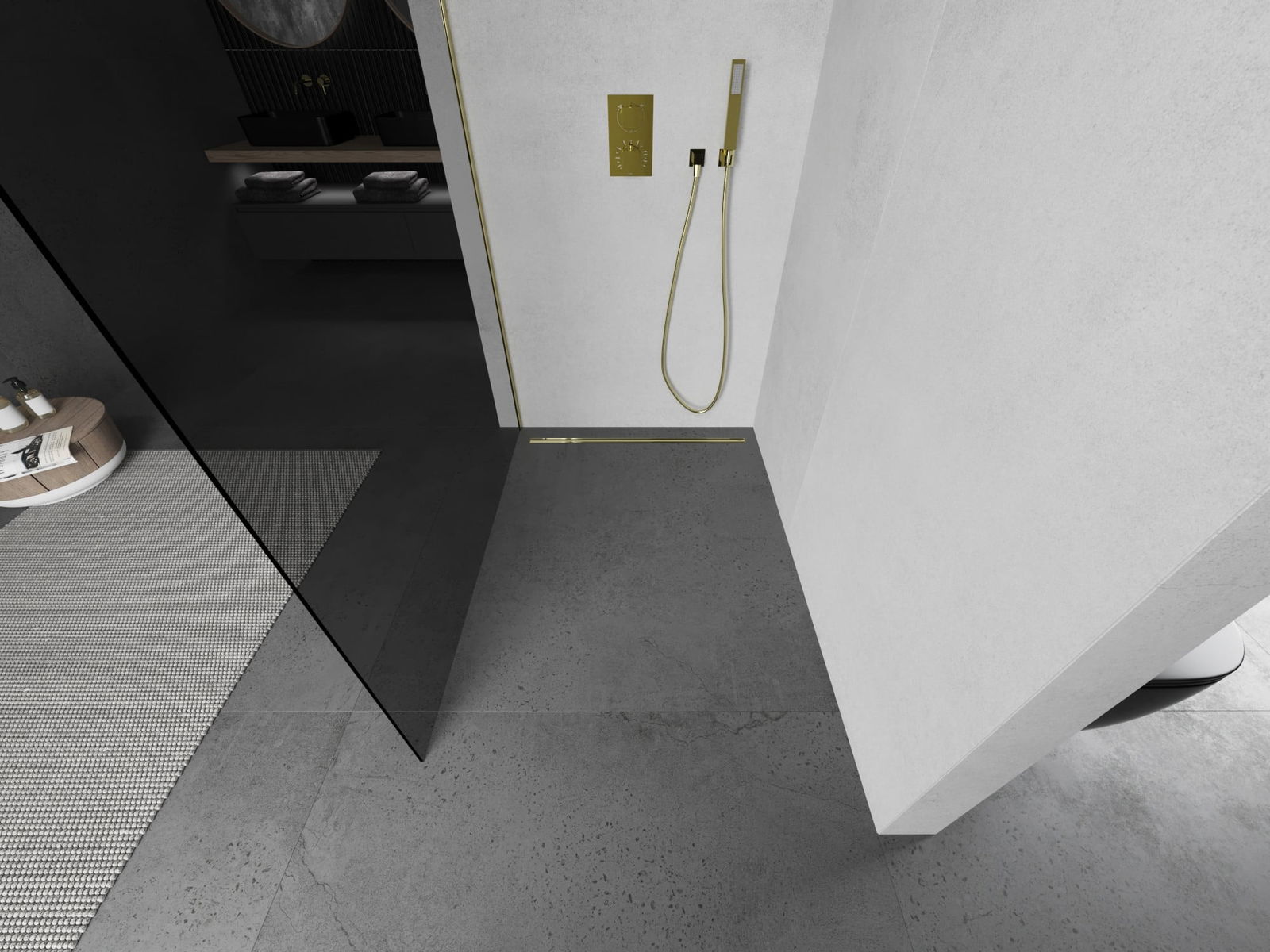 Mexen Kioto paroi de douche Walk-in 140 x 200 cm, graphite 8 mm, or - 800-140-101-50-40